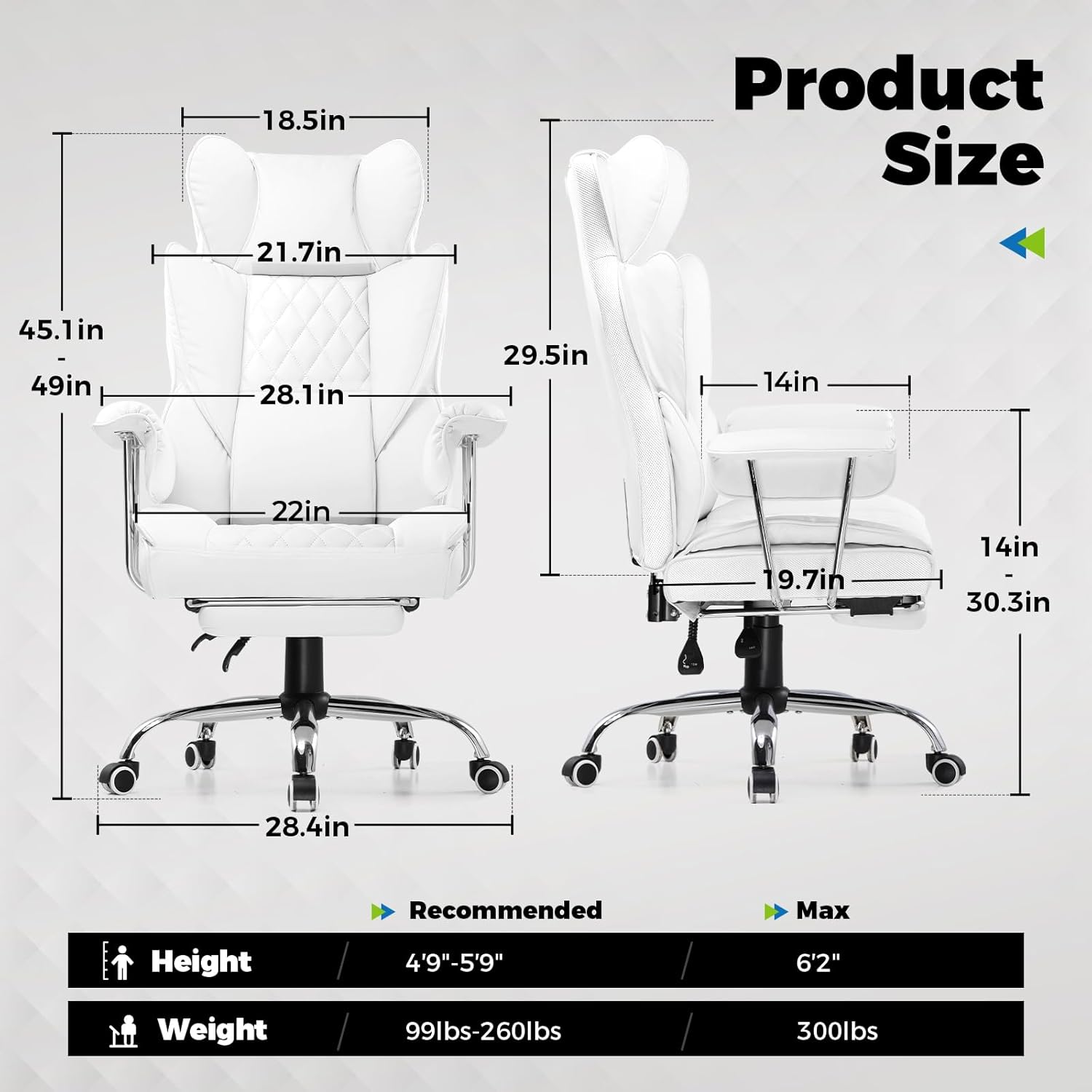 COMHOMA Big and Tall Office Chair, High Back Leather Gaming Chairs with Footrest, Executive Ergonomic Office Chair with Pocket Spring Lumbar Support and with Outward Fixed Soft Armrests