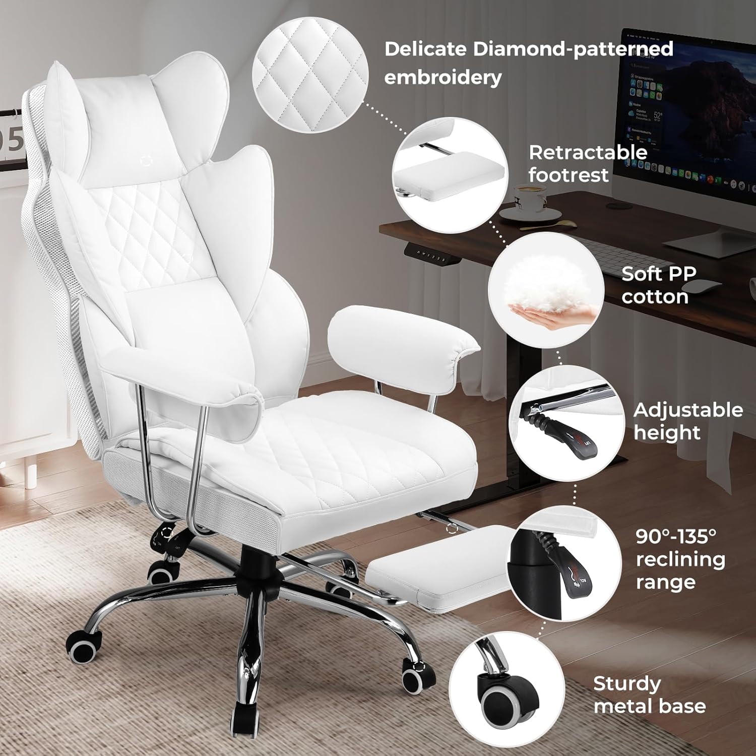 - 【Multifunctional Comfortable Seating】The spacious seat with no restrictive side wings combines pocket spring lumbar support for enhanced comfort and breathability, keeping you cool during long hours of sitting. The adjustable footrest allows you to switch effortlessly between work and relaxation modes for ultimate convenience.