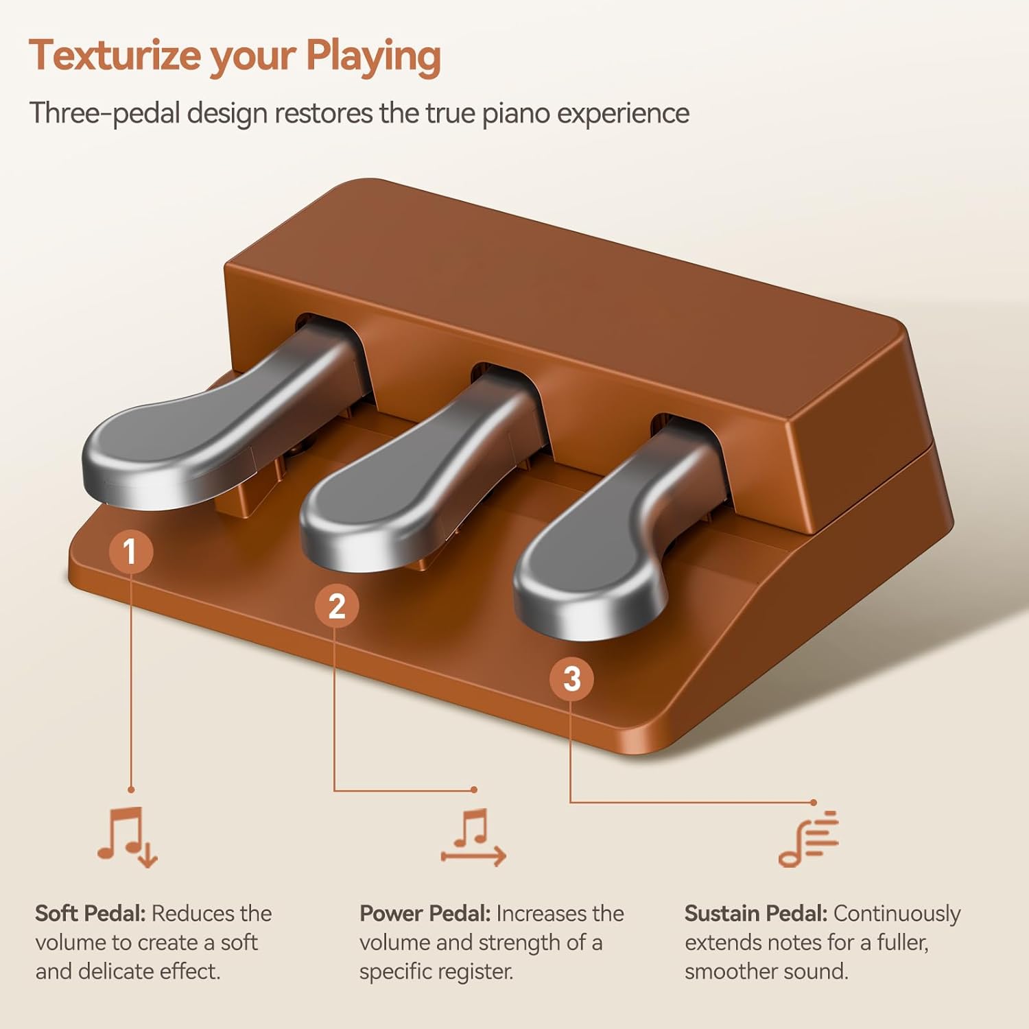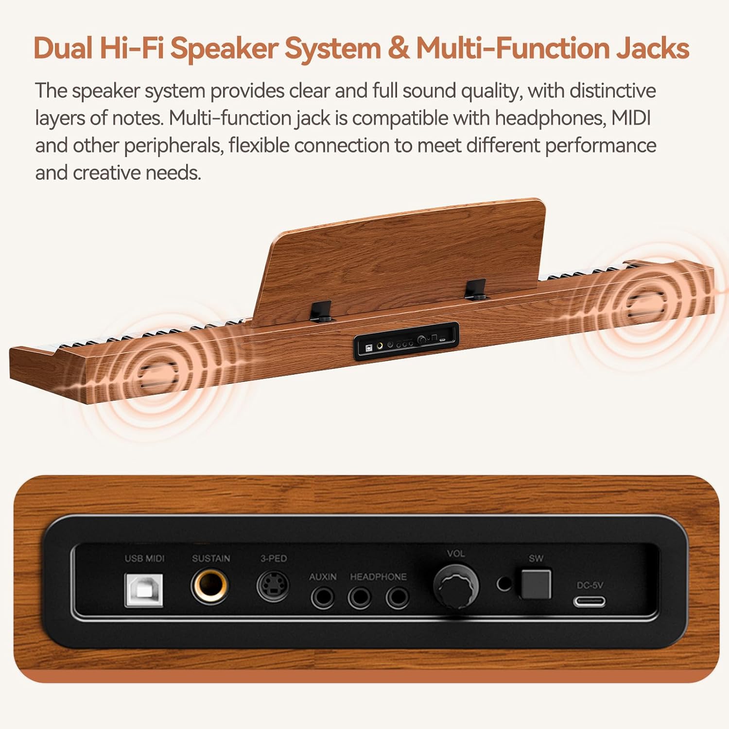 - ăSTYLISH APPEARANCEăThe full-size weighted digital piano with stand comes in walnut color, exuding a stylish and high-end look that blends perfectly with your home decor.