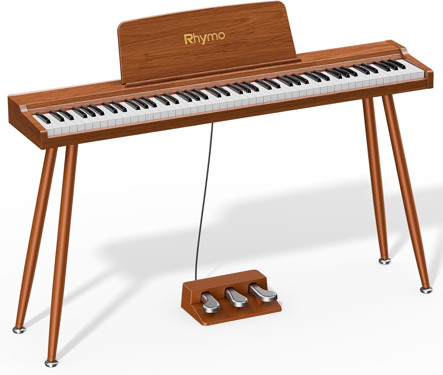 Rhymo 88 Key Weighted Keyboard Piano, Home Digital Piano Full Size Keyboard with Stand, Includes Professional Triple Pedal, Sheet Music Stand, Sensitive Touch Electric Piano Keyboard for Beginners