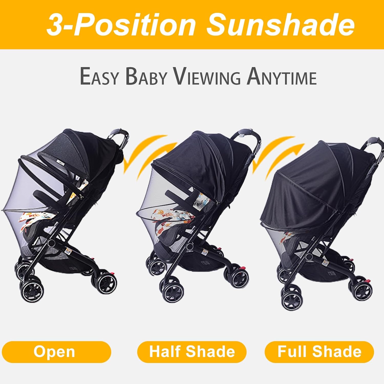- 【Sunshade Upgrade Design】Keep your baby safe and cool in summer with our 2-in-1 stroller cover. Adjustable UPF50+ baby stroller sun shade blocks harmful UV rays, while the mosquito net provides bug protection on outdoor