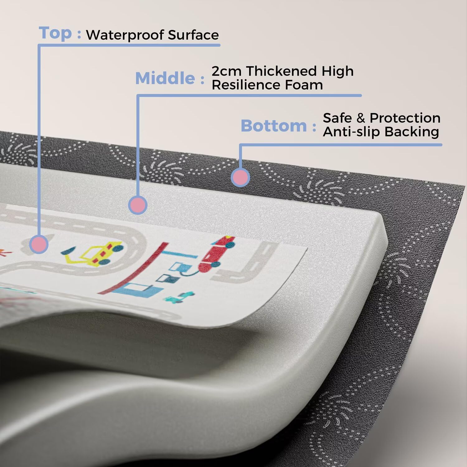 - 【Thicker Soft Premium Foam】Our baby play mats for floor is made of premium soft high-density foam, which thicker most other brand baby play mat. the back side is covered with upgraded non-slip silicone dots that has an excellent grip. soft padding provides cushioning for babies crawling, tummy time, rolling, sit up, stand and learning to walk, create a comfort space for your little angel.