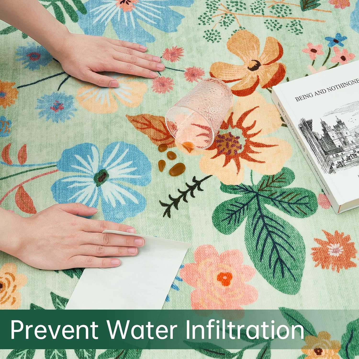 6x9 Area Rugs for Living Room Machine Washable Non Alip Ultra-Thin Spring Garden Area Carpet Soft Boho Vintage Floral Print Sage Green Accent Rugs for Bedroom Family Room Nursery Kids Playroom