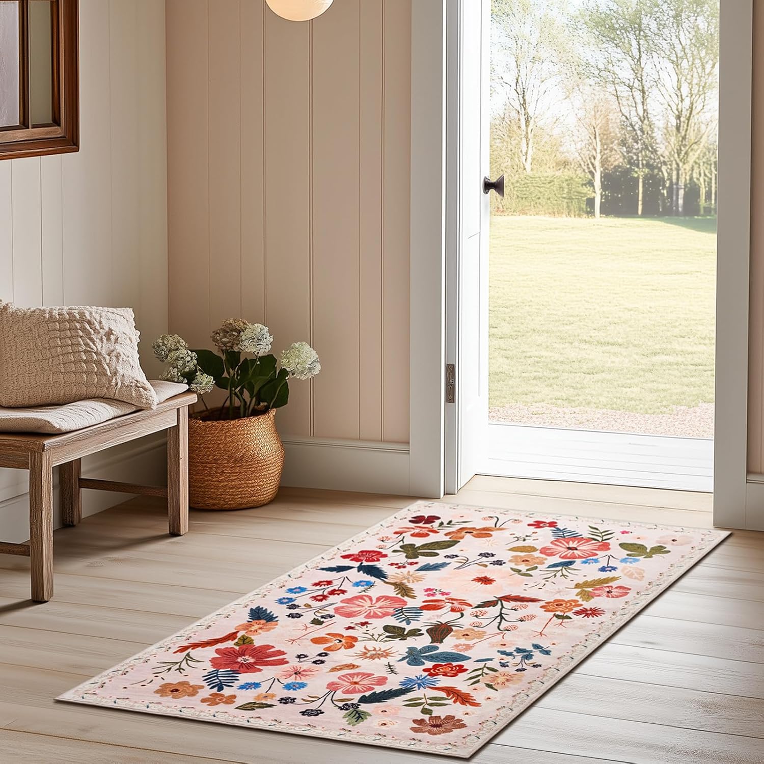 - Timeless Design for Any Space: Featuring Boho floral patterns and warm, rich colors, this area rug brings both elegance and coziness to your home. Its 0.3โ pile height makes it perfect for high-traffic areas and underneath furniture, whether youโre creating a cozy living room or a stylish dining area.