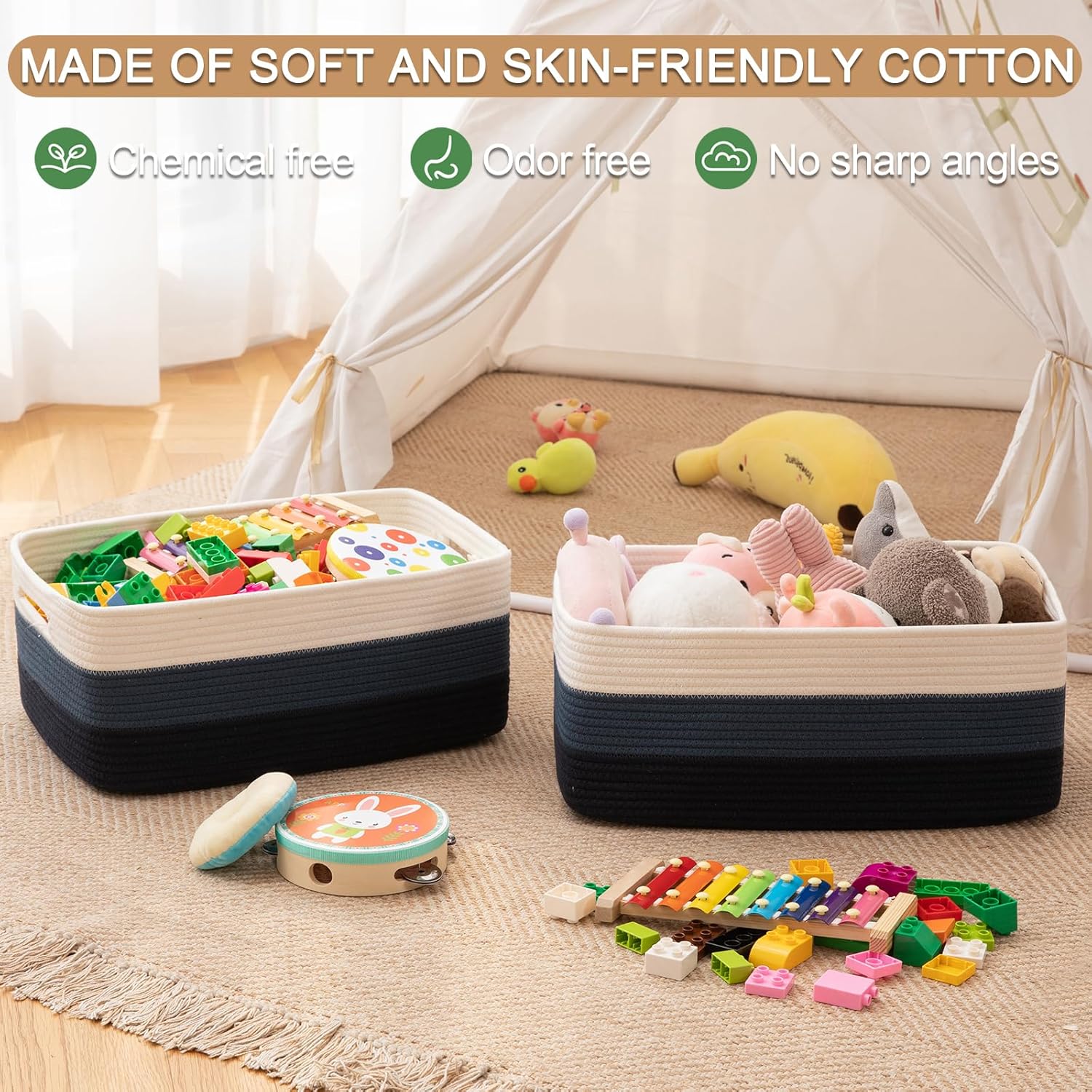 - Versatile and Convenient: Perfect as clothing baskets, baby baskets, toy bins, dog toy baskets, playroom organizers, entryway shoe baskets, and blanket baskets, or as decorative baskets and large gift baskets. A great way to reduce clutter for better organization and less stress