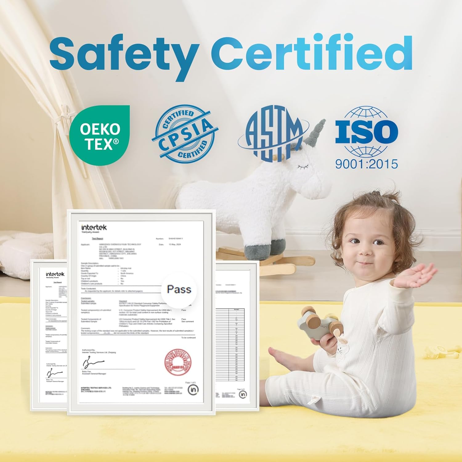 - 【Safety Certified & Fall-Proof Protection】:Made with OEKO-TEX certified fabric and CERPITUR-US certified elasti-foam, this anti-fall mat meets ASTM/CPSIA safety standards, providing a soft barrier to prevent baby from rolling off beds or furniture. Perfect for bedside fall protection and safe sleep.