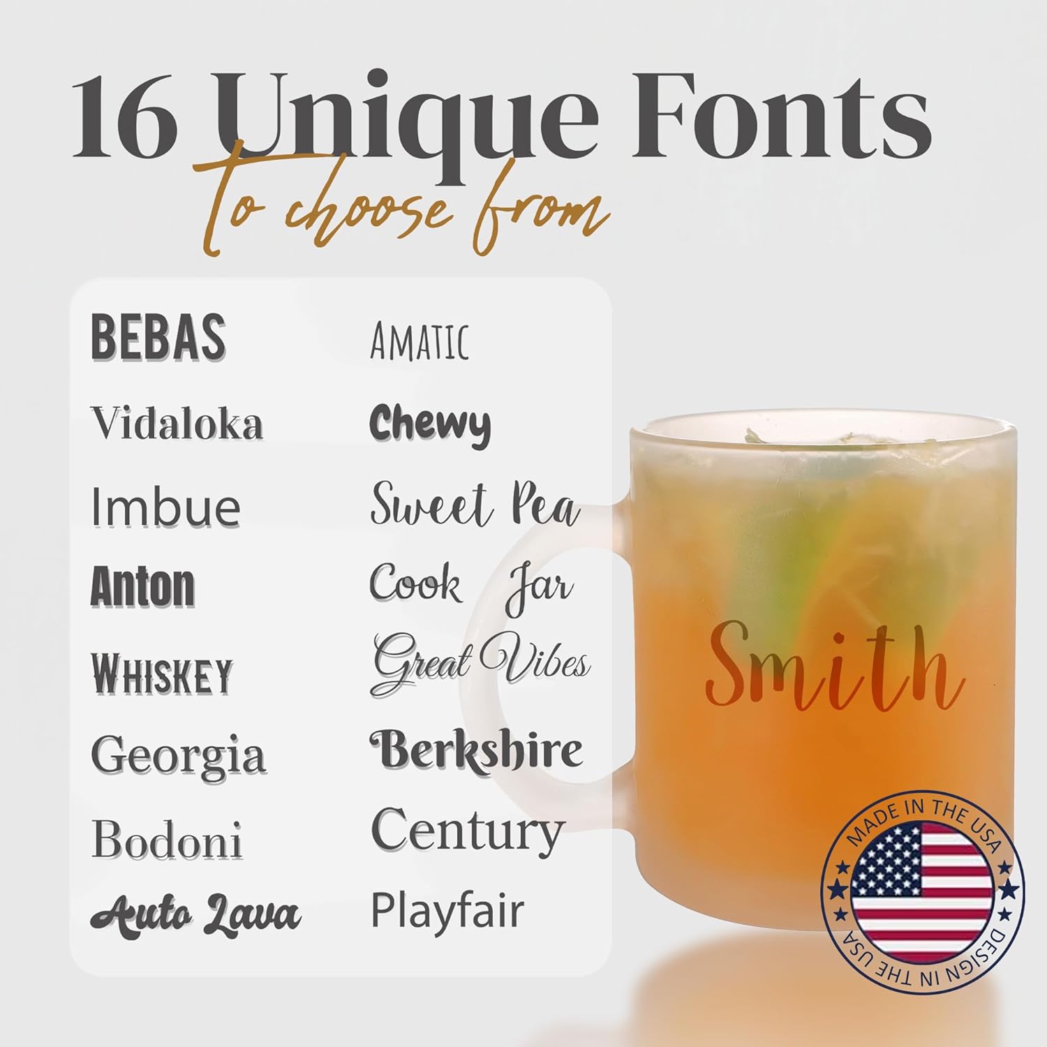 - CUSTOMIZE YOUR MUG: Our mugs give you the opportunity to create a coffee mug with your custom text. Choose from our 16 different fonts for a wide variety of options so you are able to personalize your coffee mug however you want!