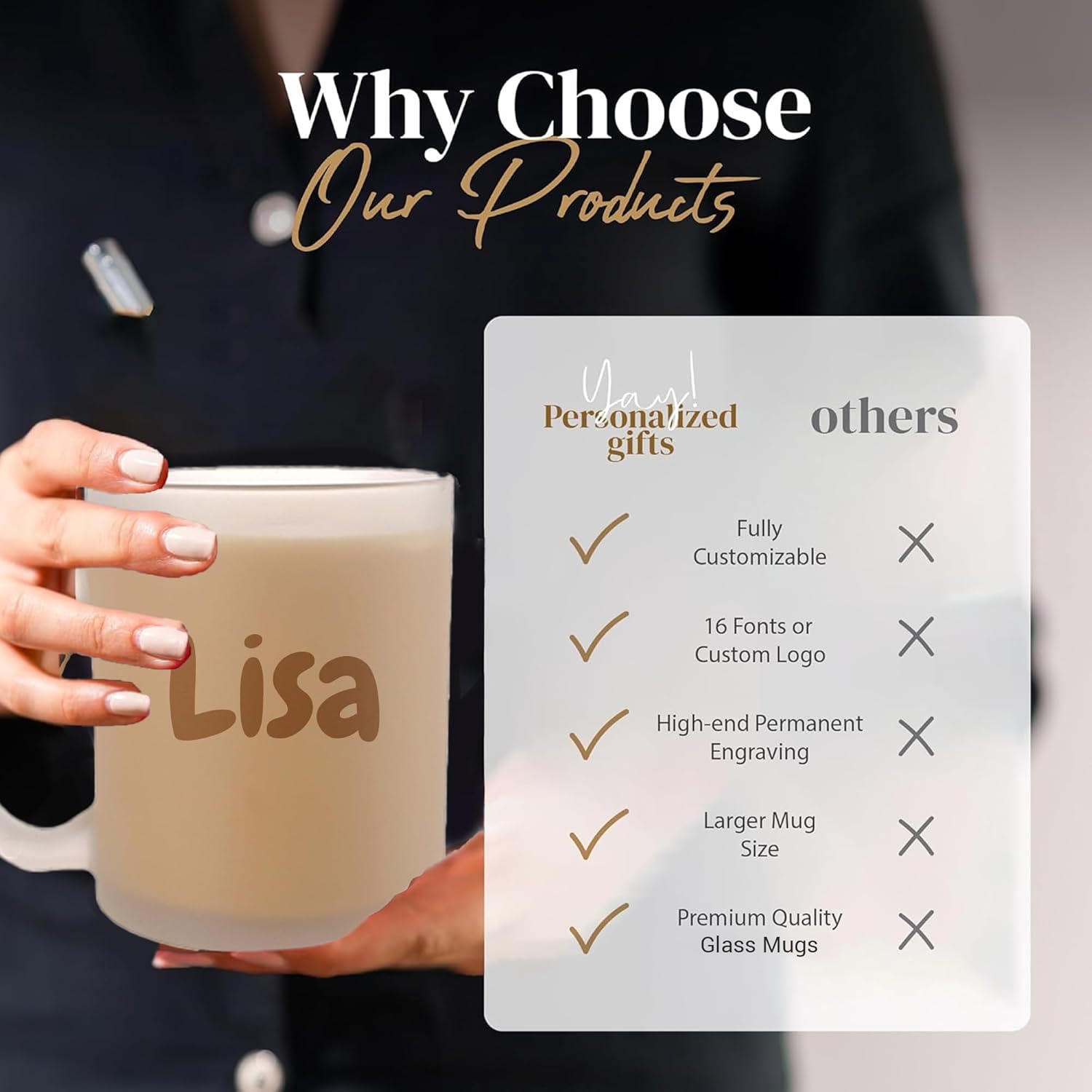 Personalized Coffee Mug Engraved with your Custom Text - Customized 11oz Frosted Glass Mugs, Hot Chocolate Mug, Tea Cup, Birthday Gifts, Retirement Gift (Engraved Custom Text, Frosted)