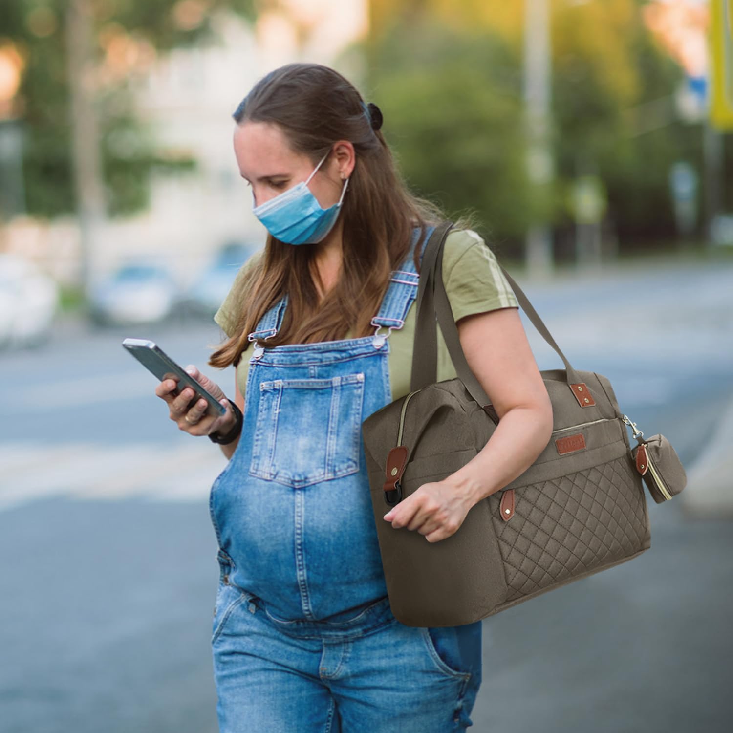 Diaper Bag Tote, Diaper Baby Bags with Pacifier Case, Shoulder Straps, Stroller Clips, Waterproof Large Mommy Maternity Travel Baby Bag for Mom and Dad, khaki, Medium