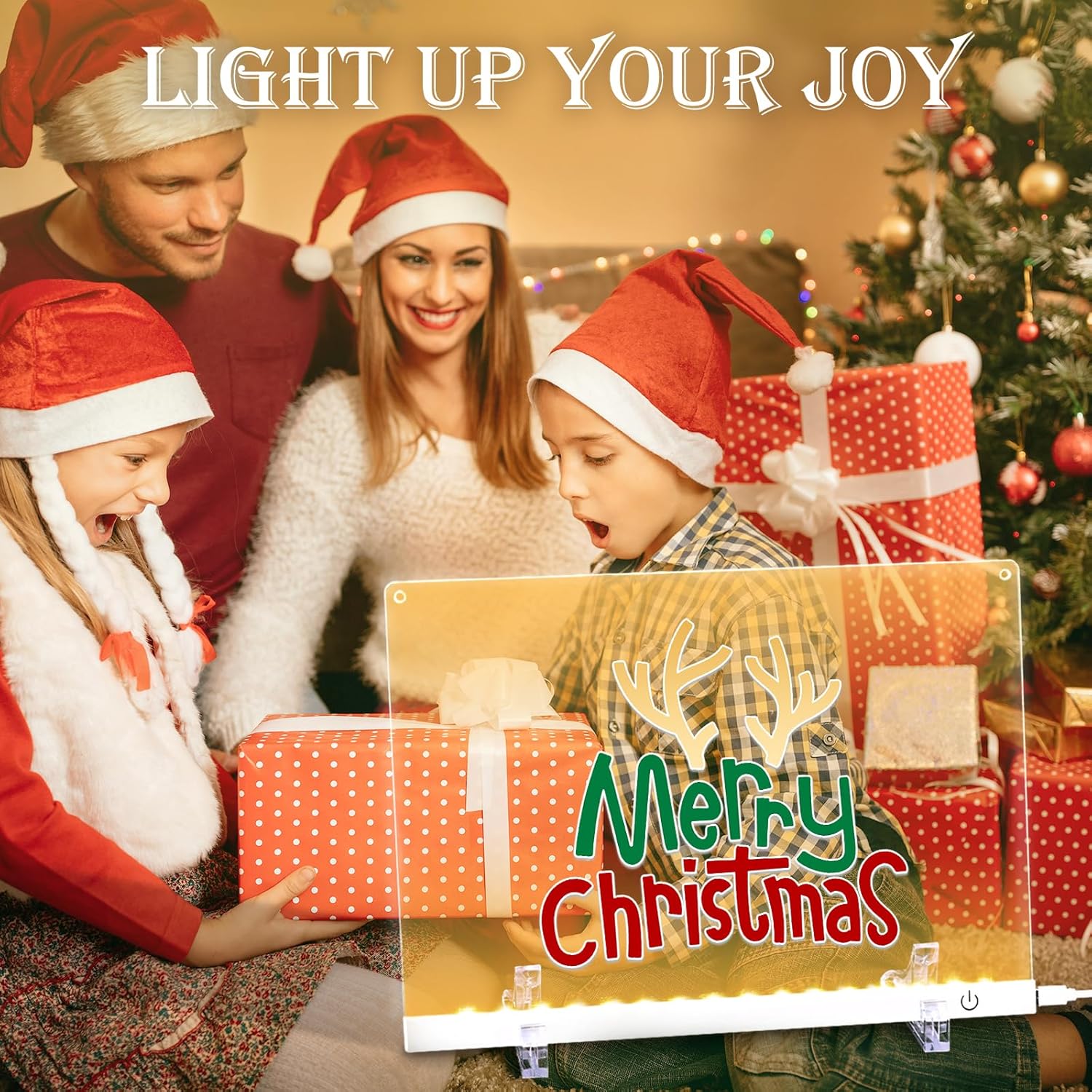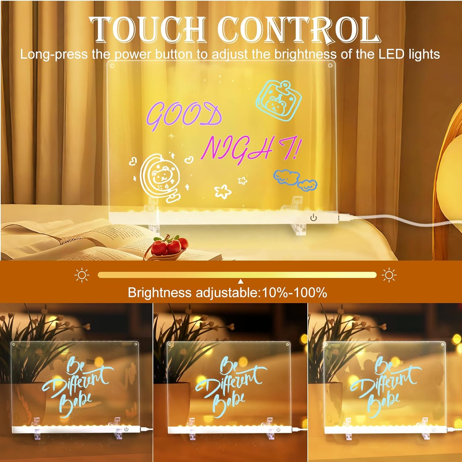 Acrylic Dry Erase Board with LED Light -11.8"x8.5" Clear Glowing Memo,Brightness Level Adjustment,12 Color Markers, Ideal for Office/Home/Kids (Standard Edition)