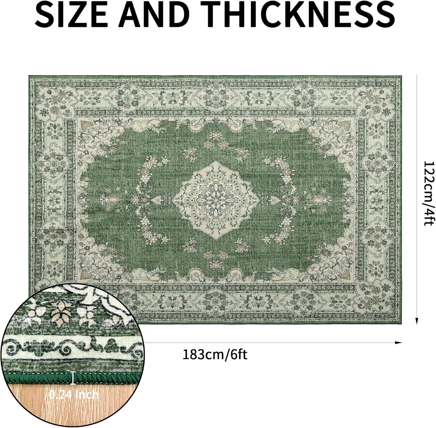 4x6 Area Rug Washable: Oriental Soft Area Rug for Living Room Bedroom No Shedding - Low Pile Thin Carpet Rug for Dining Room Non Slip - Boho Vintage Rug for Home Decor - Olive Green