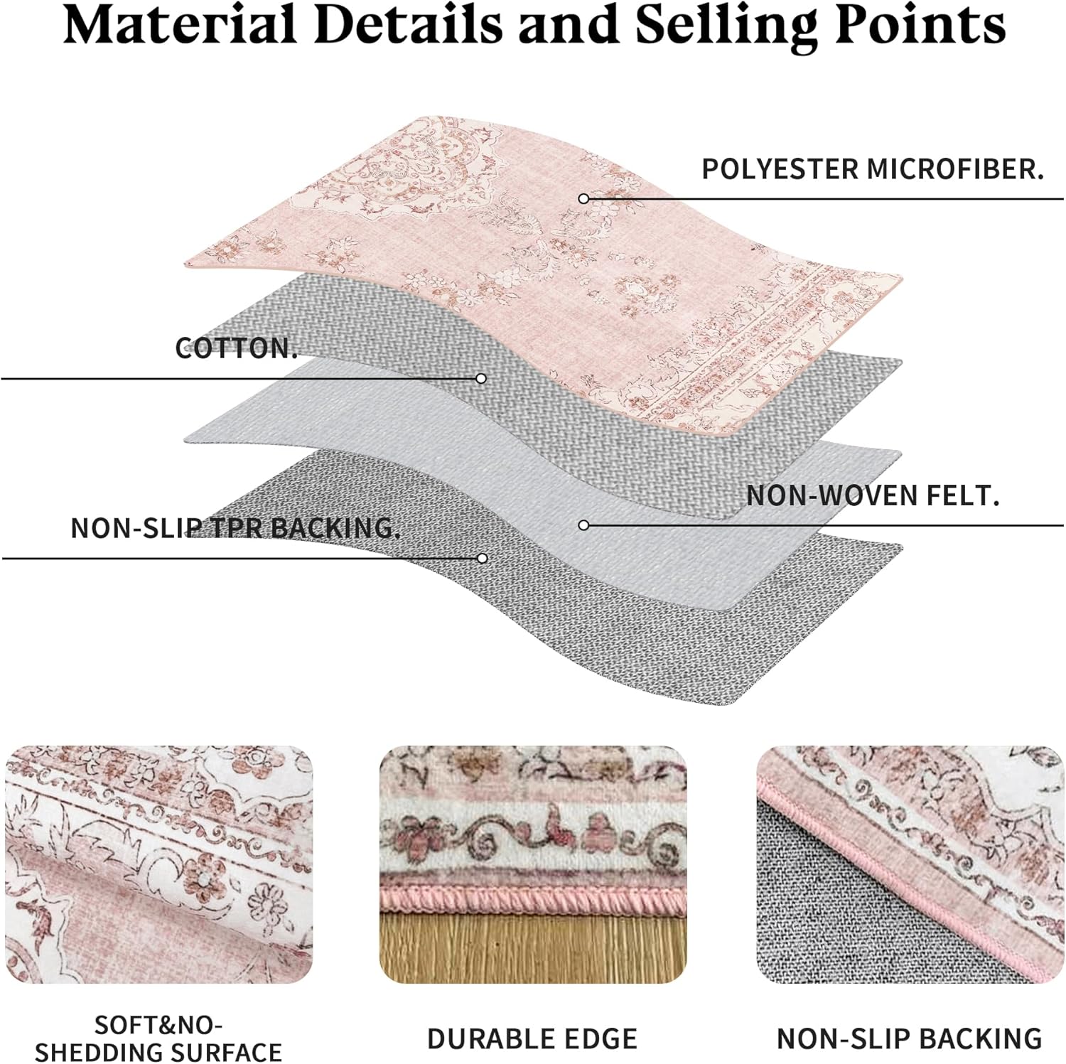 - Non-Slip Backing: The rug uses high-quality TPR elastomer synthetic rubber as an anti-skid backing to protect the safety of you and your family at all times