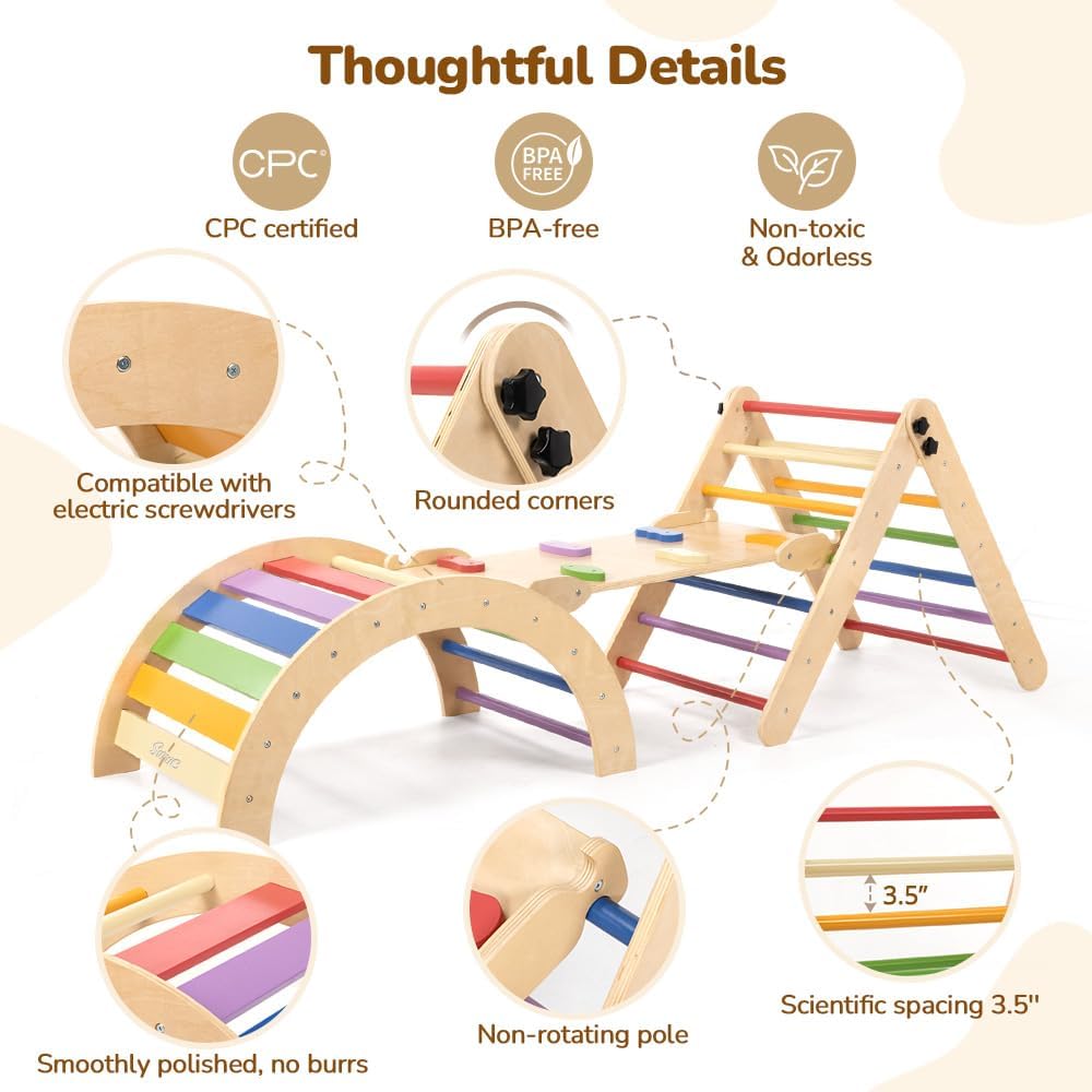 - Parent-Approved Safety & Friendly Design: Our toddler climbing toys are crafted with natural solid wood. Featuring smooth, rounded edges and safe rung spacing, they eliminate health risks and prevent injuries. Ideal for indoor use, they provide a safe, unrestricted play environment that supports your child's growth and development, giving parents peace of mind