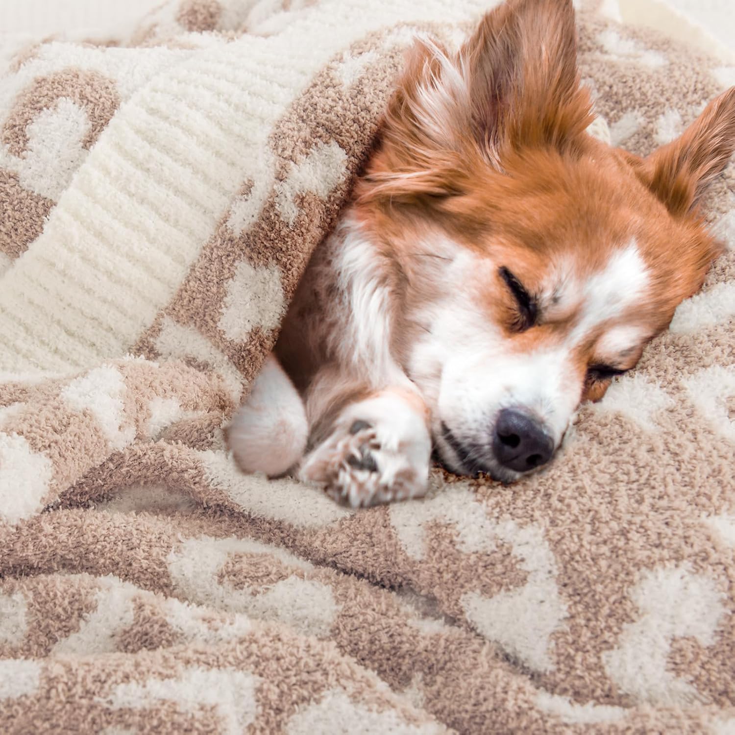 NEXHOME PRO Leopard Soft Blanket, Fuzzy Throw Blanket for Couch Bed Sofa Picnic, Knit Blankets for Women Gifts Beige 50 x 60 inches