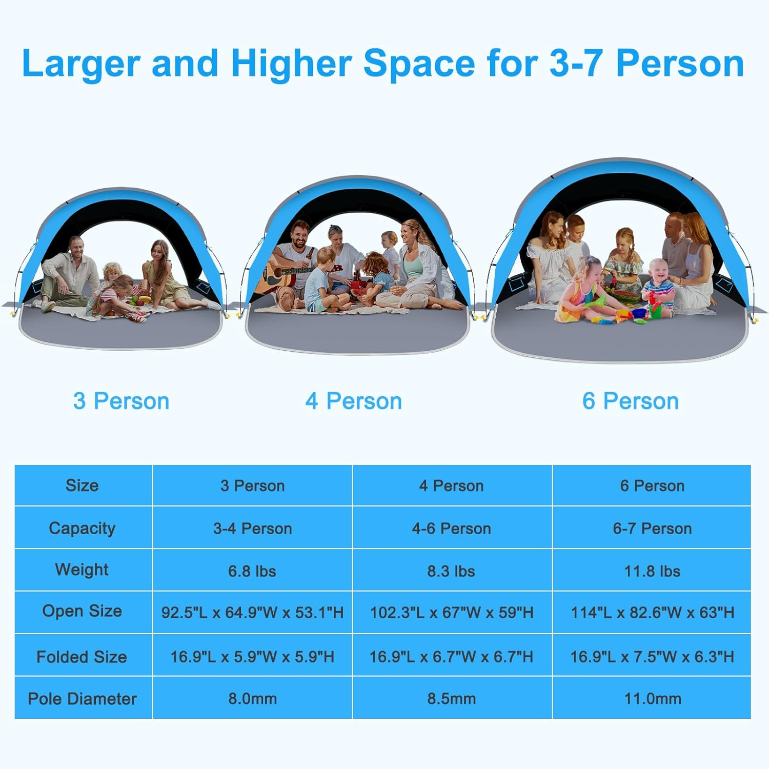 Gorich Beach Tent Sun Shelter with UPF50+ UV Protection for 3/4-5/6-7 Person, Lightweight & Portable Beach Shade Canopy with 2 Zippered Doors, Easy Setup Family Beach Umbrella