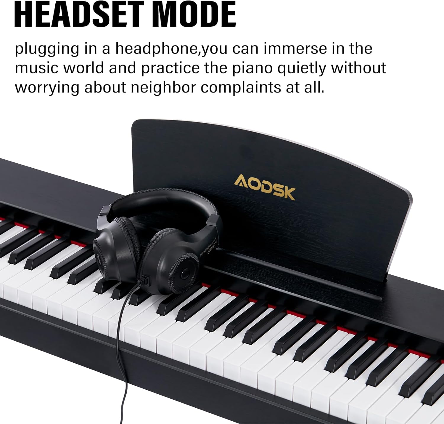 AODSK 88 Keys Digital Piano,Full-size semi weighted key,128 Tones & Rhythms, MIDI/USB Connectivity, Headphone Jack