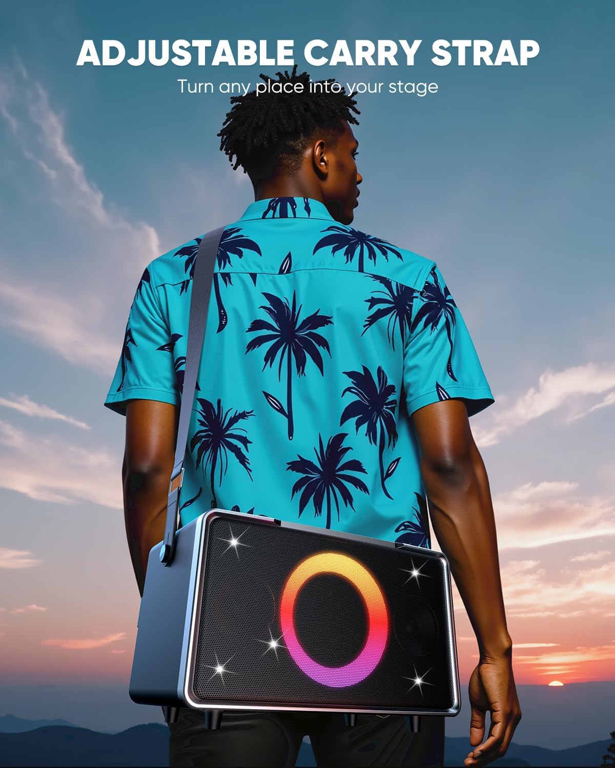- WIRELESS MIC: Bluetooth speaker with microphone supporting 3 modes (KTV/Reverb/Speech). Bring it to your living room for family party sessions, or take it outdoors for park barbecues and picnics—turn any space into your personal stage.