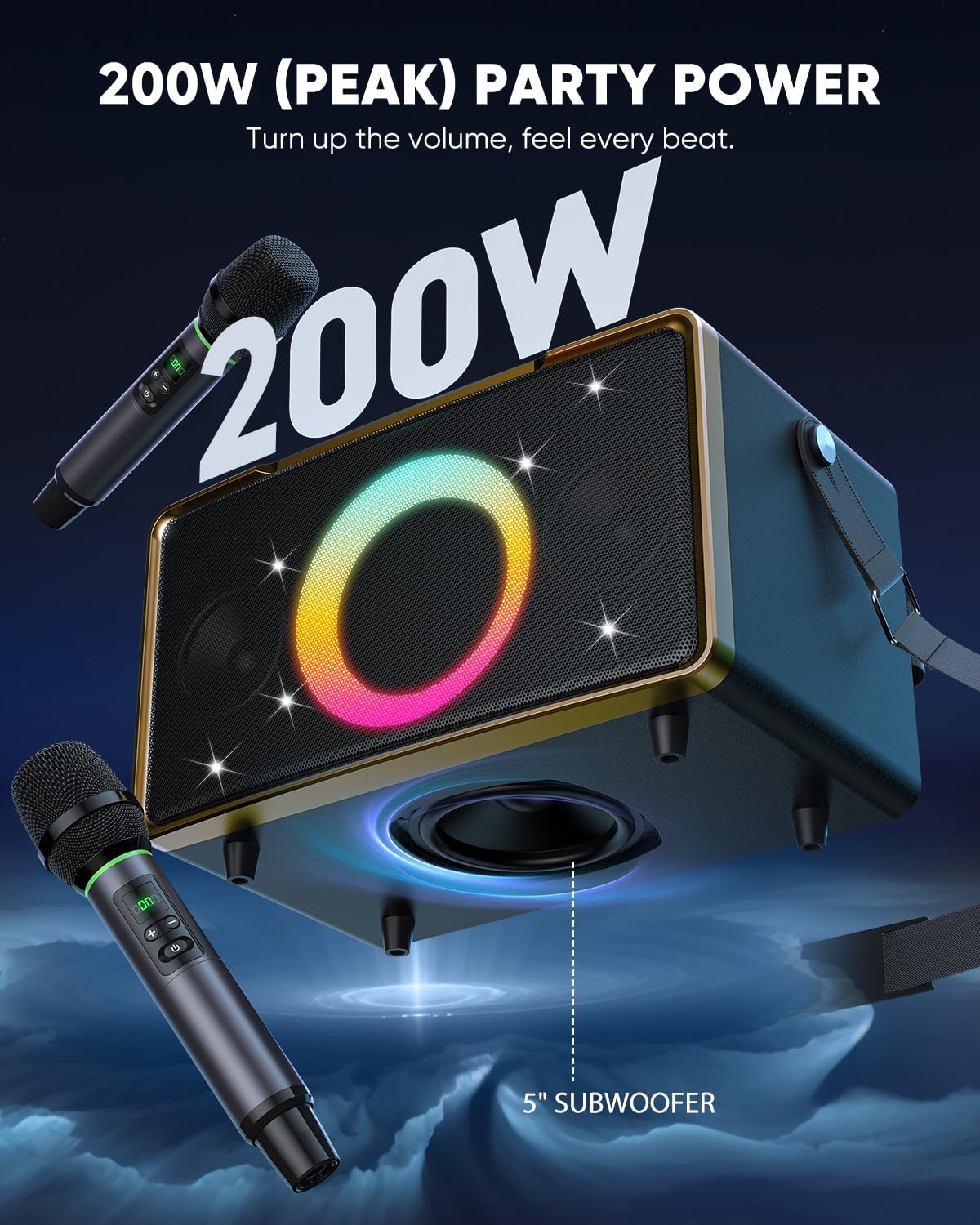 - 200W OUTPUT & 5" SUBWOOFER: GFEEN party Bluetooth speaker delivers powerful 200W peak power and a 5-inch subwoofer, delivering an immersive and powerful bass experience for music enthusiasts of hip-hop, rock, classical, electronic, and beyond. Creates a concert-like audio experience.