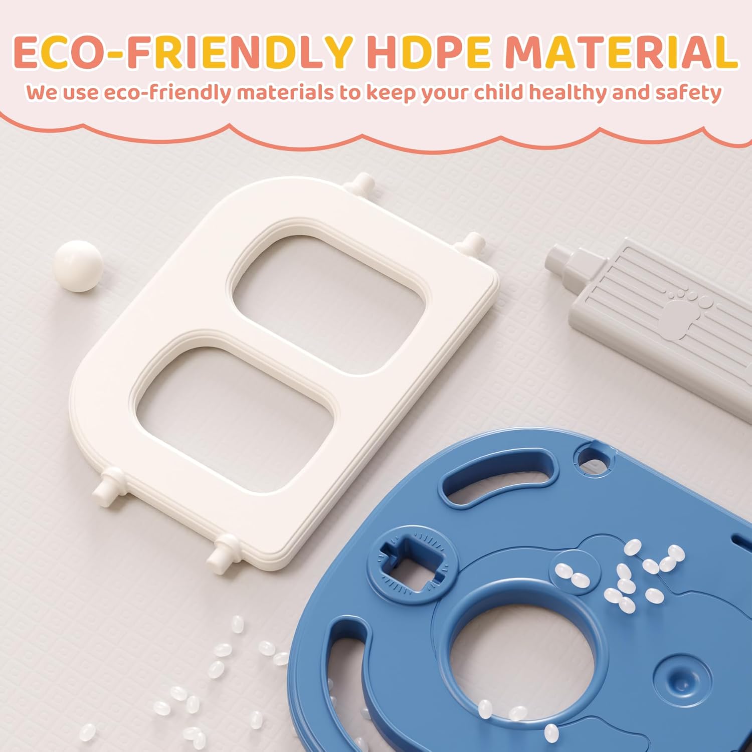 - 【L-Structure and Safe Material】: The toddler playground set is an L-shaped structure when viewed from an overhead perspective. It is made of HDPE and has passed ASTM, CPSIA and CPC certifications, ensuring the safety for your child. Its stair has fully enclosed 10.2"/26cm steps with anti-slip cartoon textures, providing a secure climbing experience.
