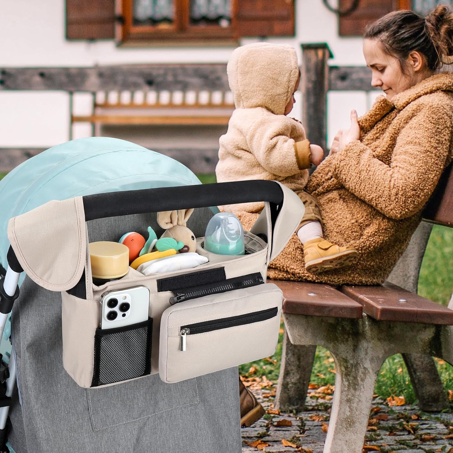 - Multiple Usage Methods : It can be hung as a stroller cup holder organizer on the stroller. When you don't need to use a stroller, you can also install the accompanying strap and carry this organizer bag for easy outing.