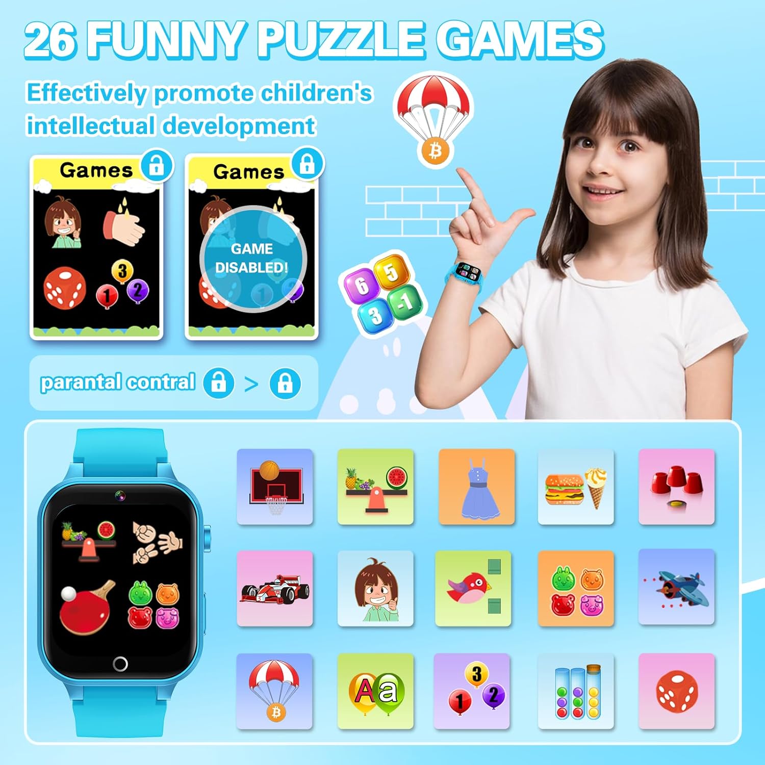 - 【Upgrade Kids Watch with Screen Protector】As the newest upgrade kids smart watch, introduces the newest habit tracking function, stories, and learn card that traditional watches don't have, cultivating children's good habits and imagination. And with playable 26 games to choose from kids. These are suitable for children of multiple ages. That can effectively exercise kids brain and logical thinking ability. It is a perfect gift for 4-12 year old boys and girls, stories, and learning cards to cultivate good habits and stimulate imagination
