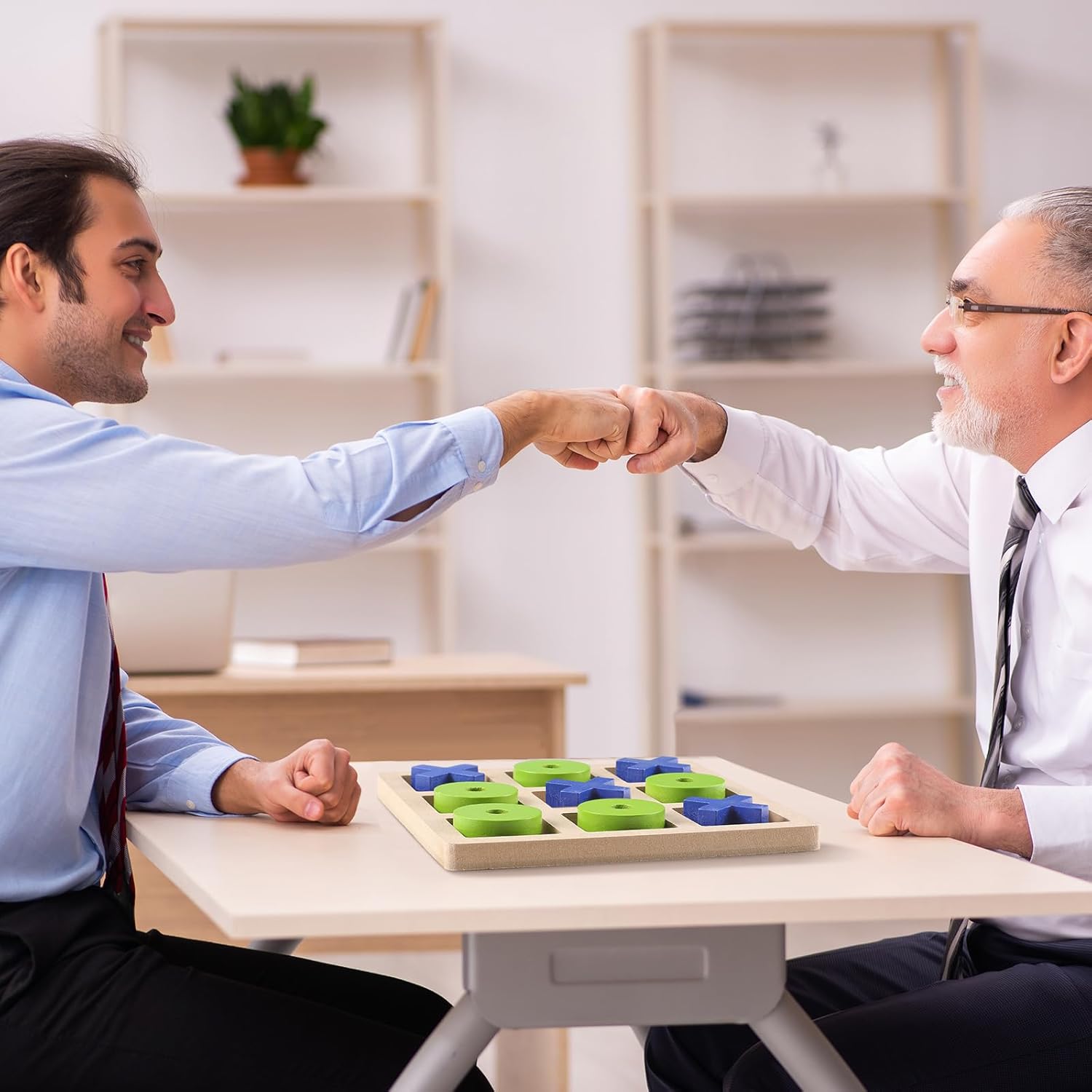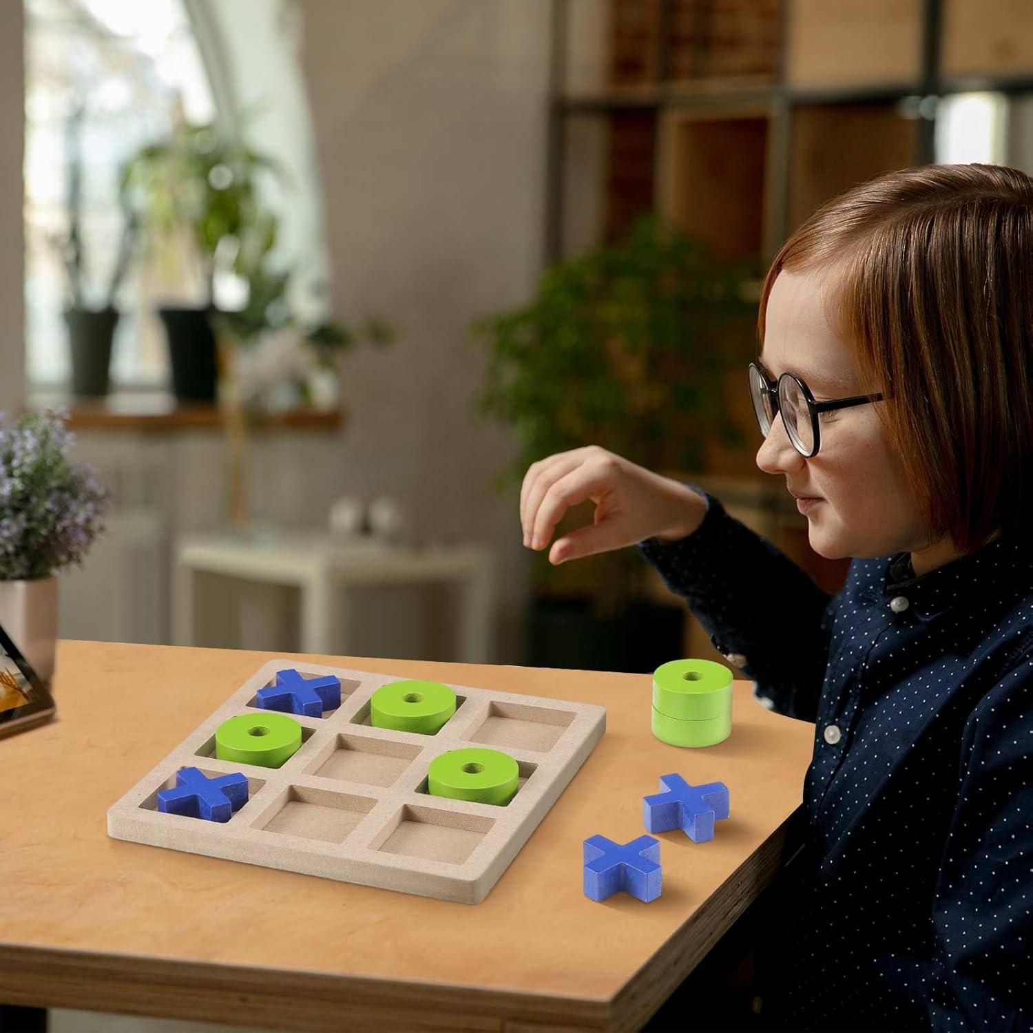 - Packaging and Contents: the package includes one set of a wooden tic tac toe game, comprising beautifully crafted and colorful green o shaped pieces and blue x shaped pieces; This set ensures you can seamlessly start gameplay once received, eliminating the need for any outside materials