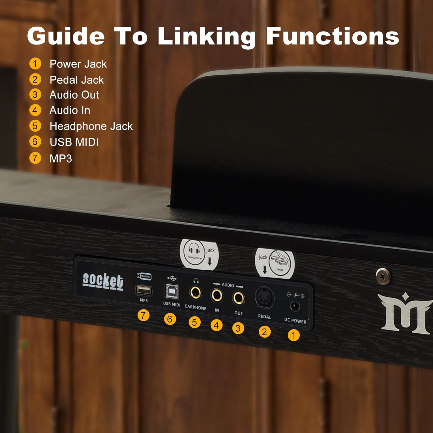 - 【Versatile Keyboard & Dual Voice Mode】Enjoy split keyboard functionality on the MUSTAR 88 key electric piano, perfect for duets, ensemble playing, and teaching. The dual-tone mode combines two voices, like piano and bass, inspiring creativity and new musical ideas.