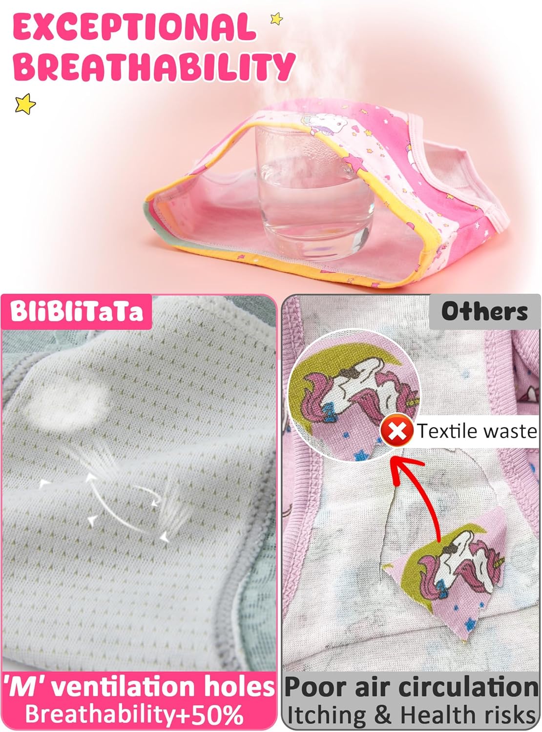 - The innovative M-shaped ventilation holes in the gusset enhance airflow and tackle discomfort and humidity, improving breathability by 50% to keep her feeling dry and fresh all day long.