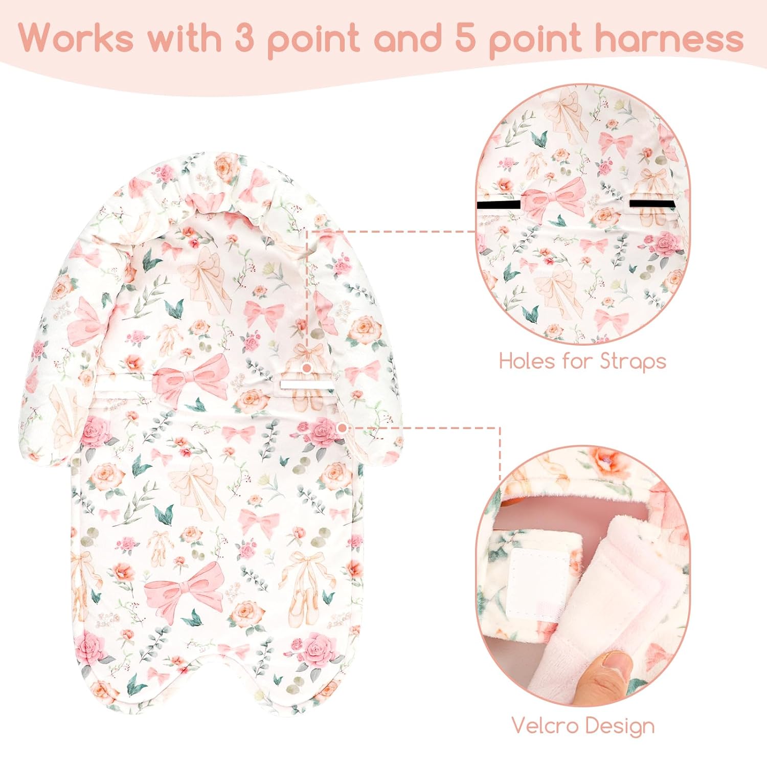 - Quality Soft Fabric: This cute infant car seat insert head and body support is made of soft plush fabric, cozy and lightweight, provides comfortable support for baby's head and body without irritating baby's delicate skin