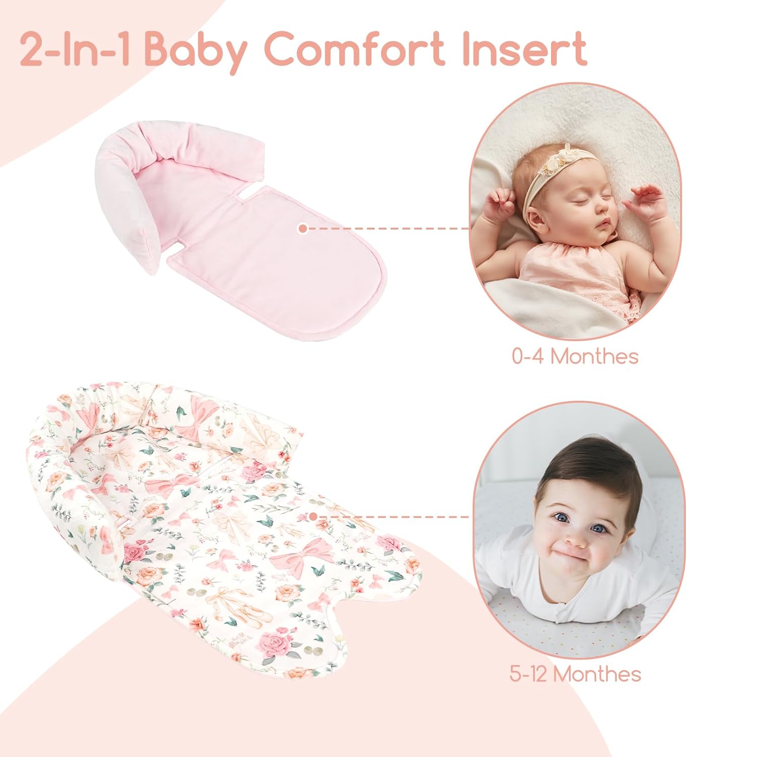 - Unique Pattern Design: The baby car seat Support has a fresh pink floral design and the smaller body support is solid pink, which can be used together or separately to give your baby a different experience