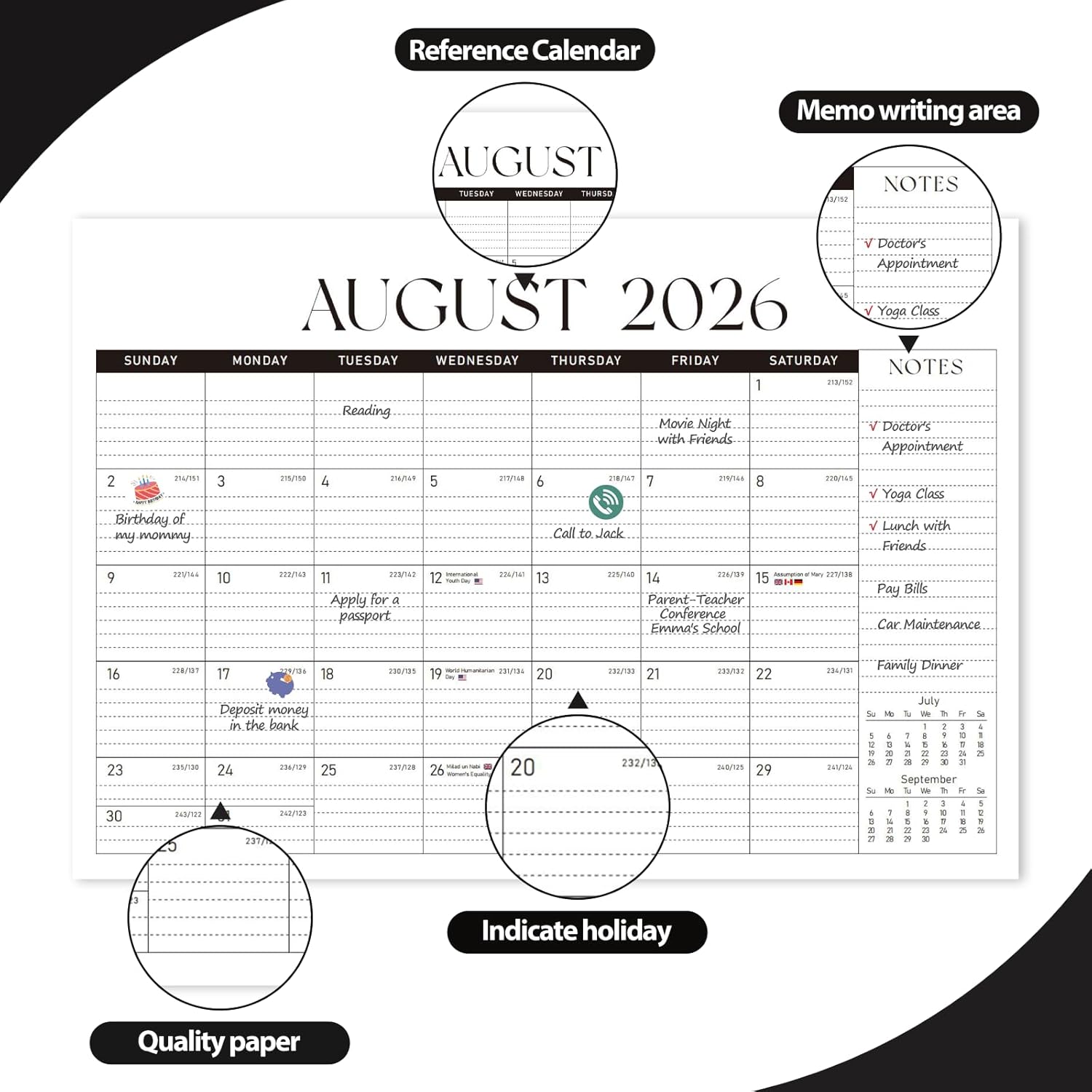 - [PERFECTLY SIZED FOR PLANNING] – Measuring 17" x 12", the 2025-2026 desk calendar offers ample space for notes, appointments, and reminders while fitting neatly on your desk or wall. A dedicated notes section helps keep memos, goals, and to-do lists organized in one place.