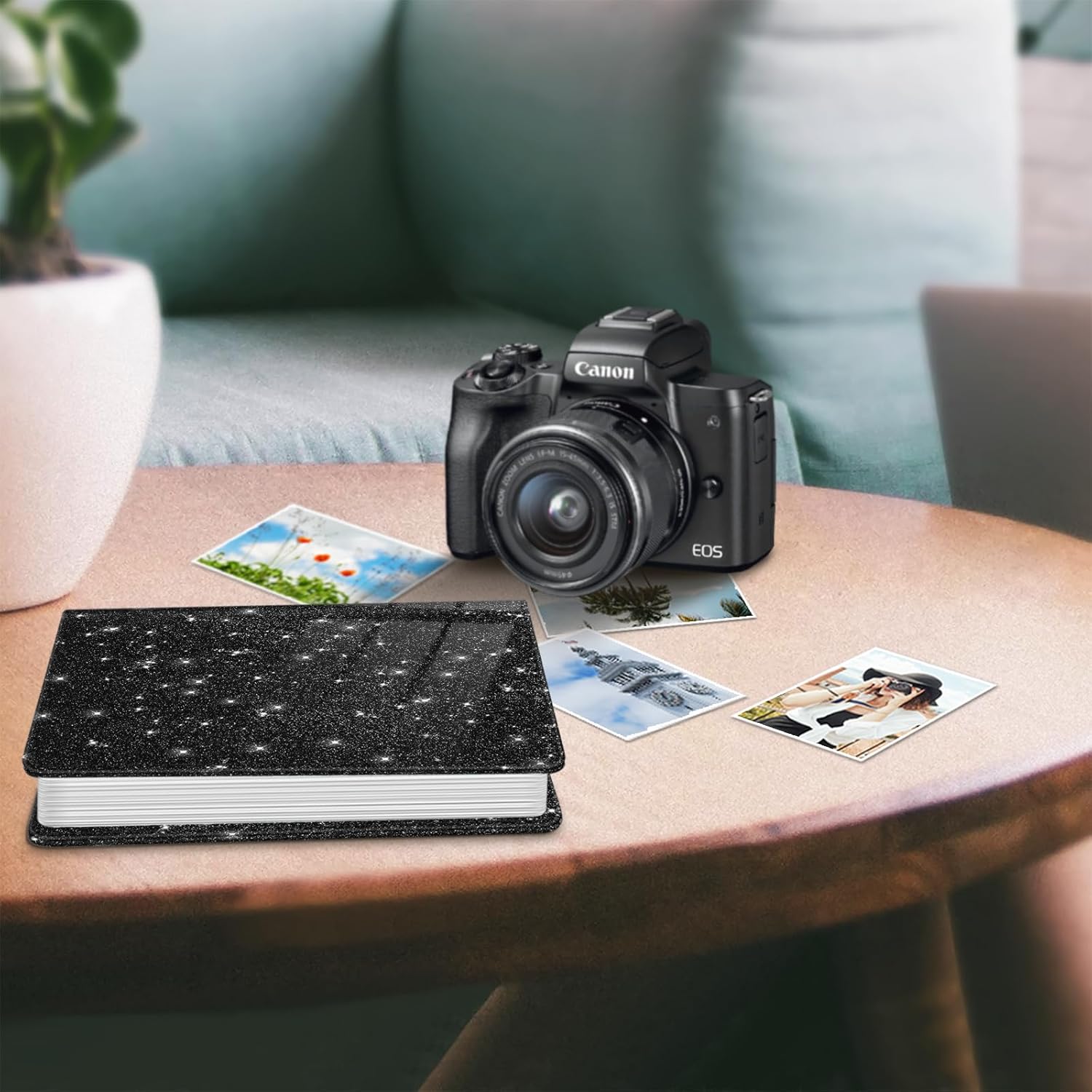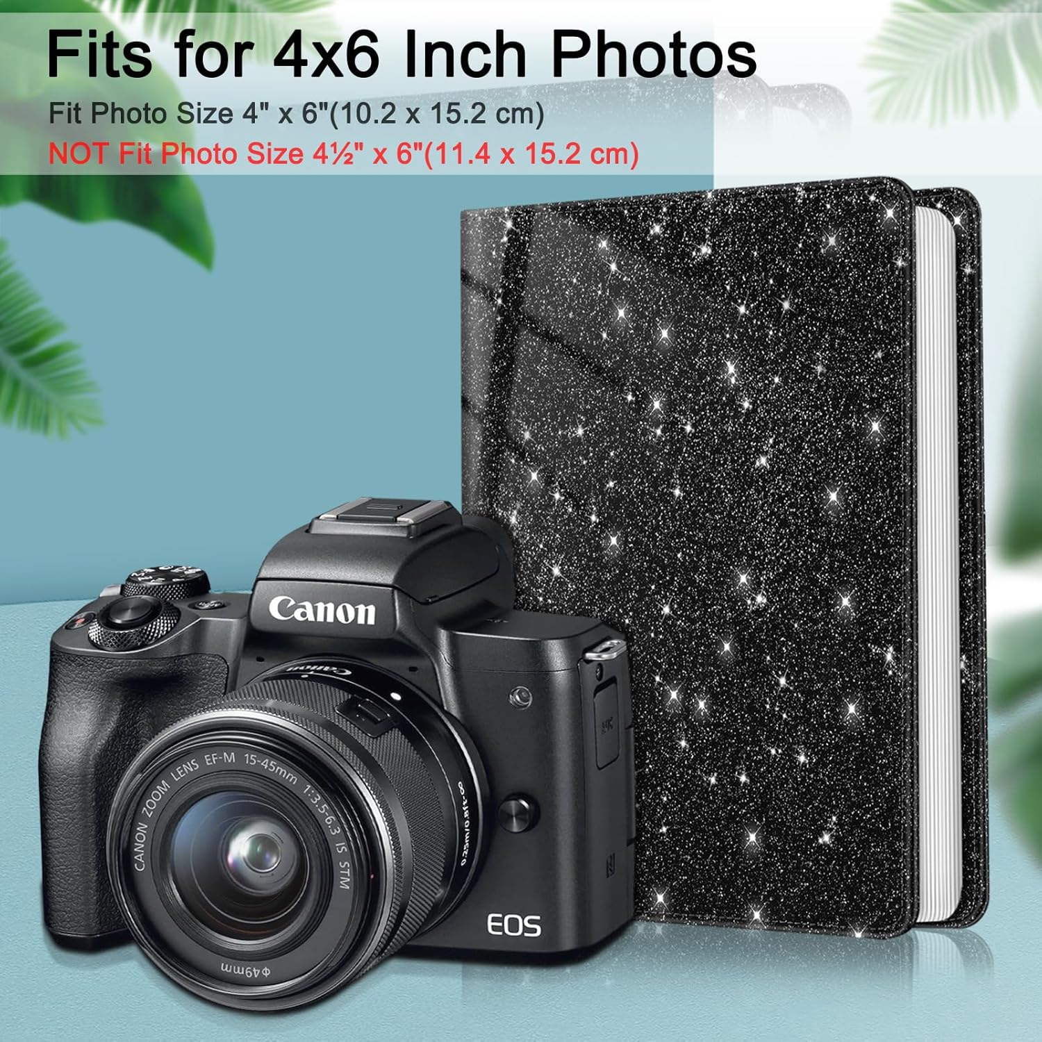 Fintie Photo Album for 4x6 Photos - 112 Pockets Vegan Leather Cover Memory Albums Book for Birthday Family Anniversary Vacation Pictures, Glittering Black