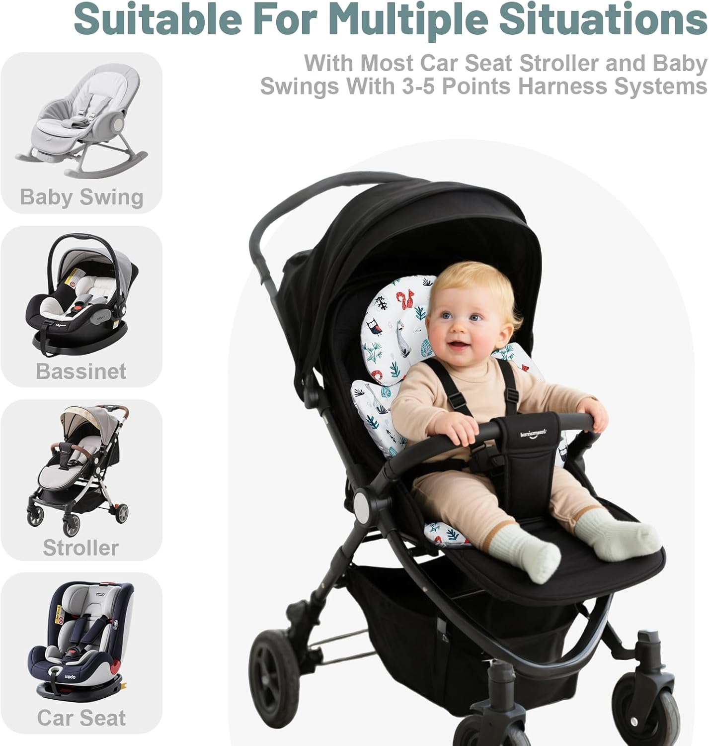 - Thickened Head & Body Support: The infant car seat insert designed with full and thick head fillings provides the most head support for babies, Comfort of highly filled natural cotton in the body make babies feel more comfort and softer,providing extra comfort for your little one during travel