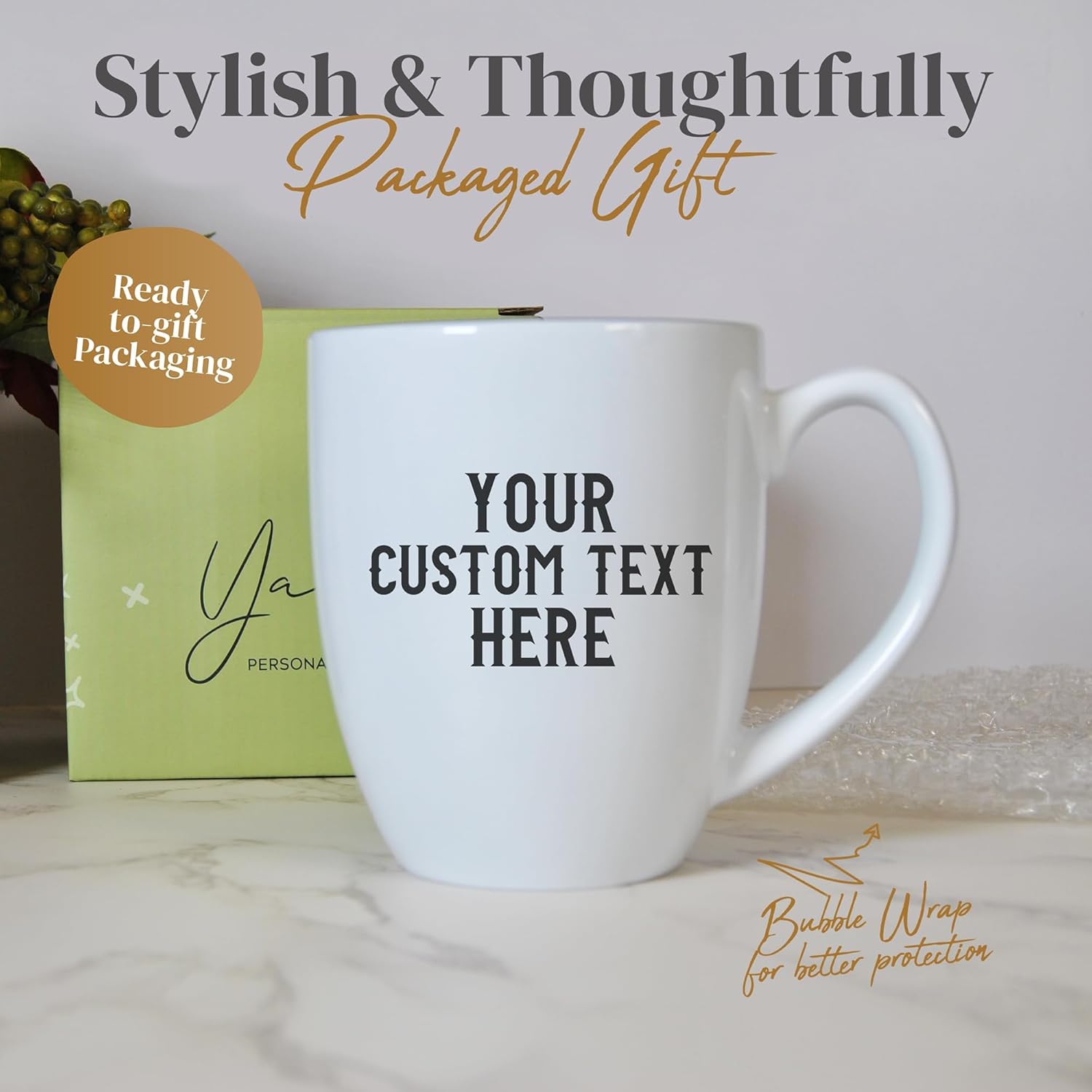 Personalized Coffee Mug Engraved with your Custom Text - Customized Coffee Mugs, Hot Chocolate Mug, Tea Cup, Birthday Gifts, Retirement Gift (Engraved Custom Text, Glossy White)