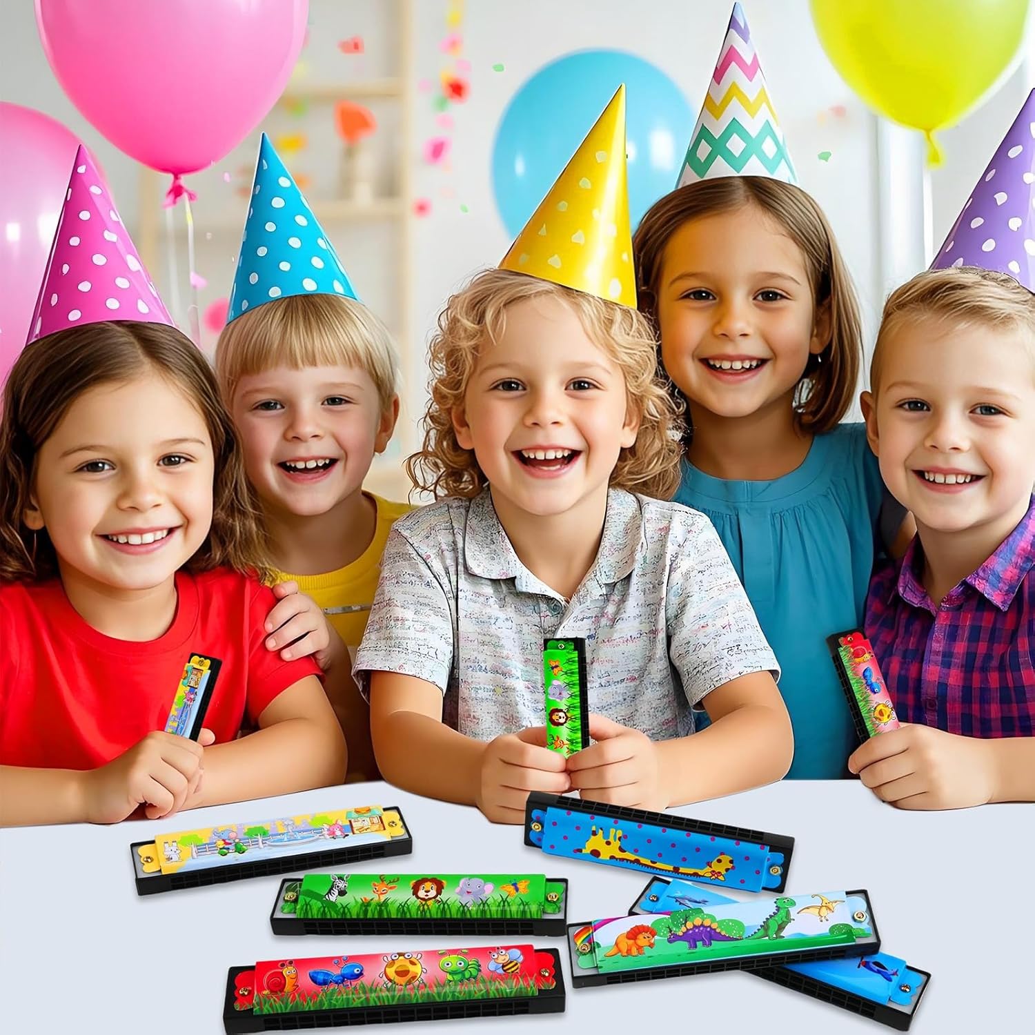 - Harmonica: This harmonica has 6 cartoon designs, with vivid colors,which can delight. Whether as a party gift or everyday item, harmonica for beginners provides endless fun and is suitable for both frineds and family to enjoy the joy of music together