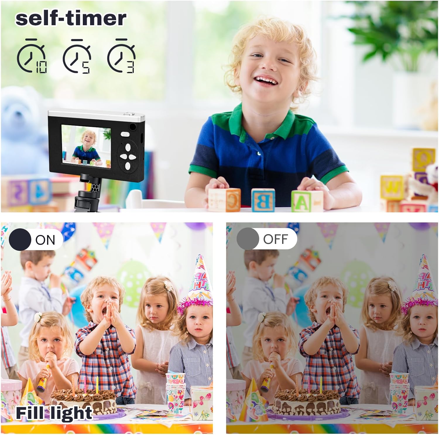 - ăHD Video Recording & Compact Designăâ Record smooth 1080P videos and carry this lightweight camera anywhereâideal for travel, school projects, or daily use by children aged 5+
