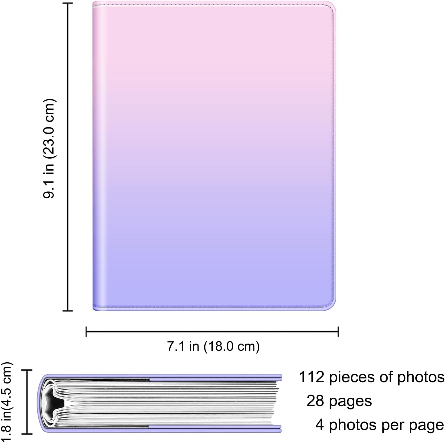 - Hold 112 photos in total. This album contains 28 individual pages with 2 inserts per side [4 photos per page], opens like a book for easy viewing. Designed with insert pocket for credit cards and name cards. Best for weddings, engagements, graduations, baby photos or other arty obsessions.