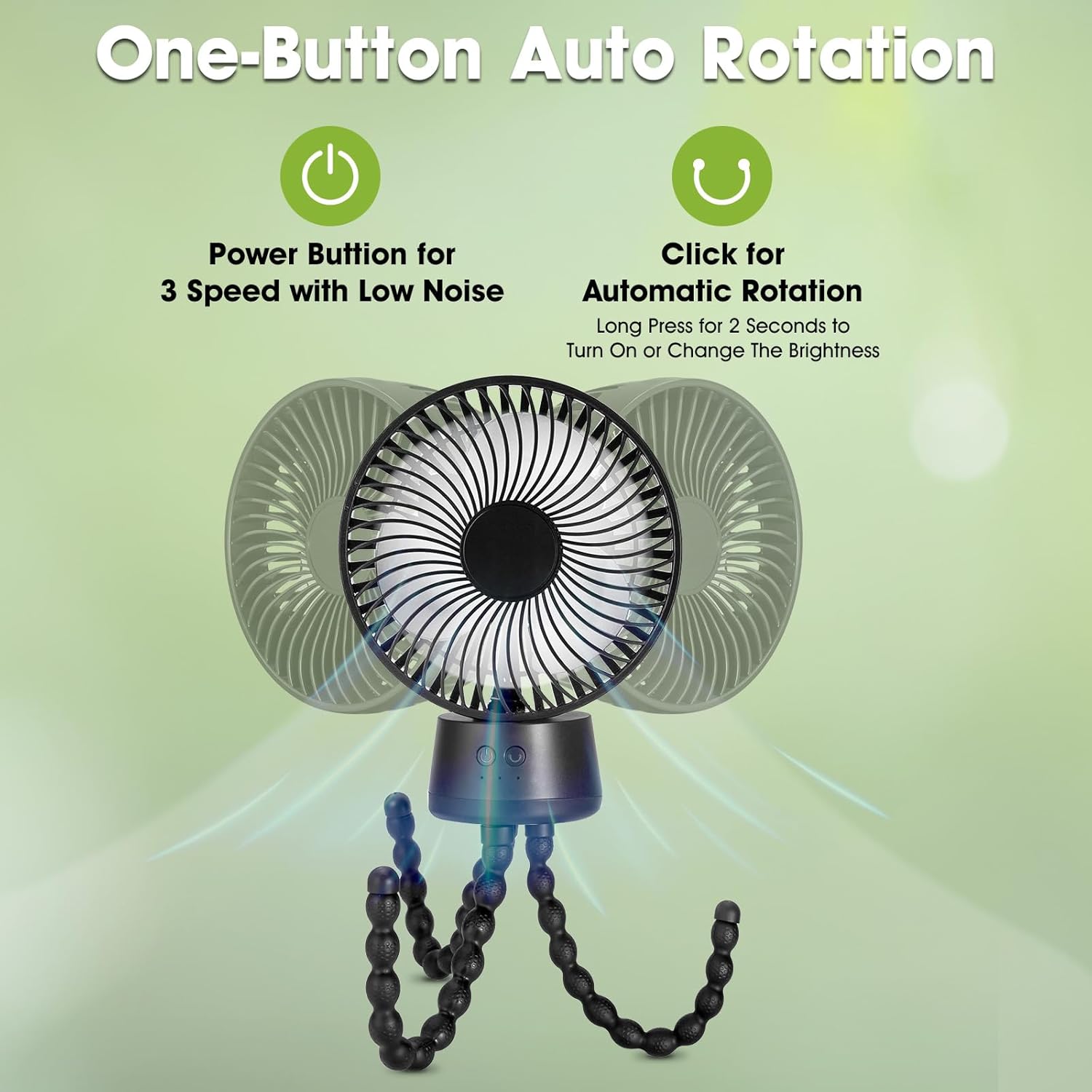 50H Portable Stroller Fan, 15000mAh Ultra-Long Battery Powered Rechargeable Personal Fans, Tripod Clip Fan with Auto Rotation,3 Speed Desk Handheld Cooling for Travel Car Seat Bedroom