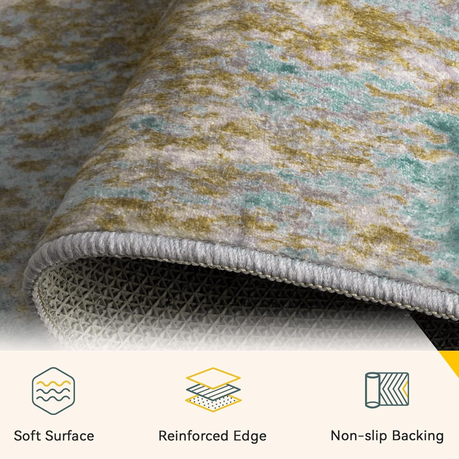 Washable Area Rugs 5'x7' Non-Slip Modern Abstract Soft for Living Room Entryway Bedroom Nursery, Print Pattern, Teal Blue Taupe