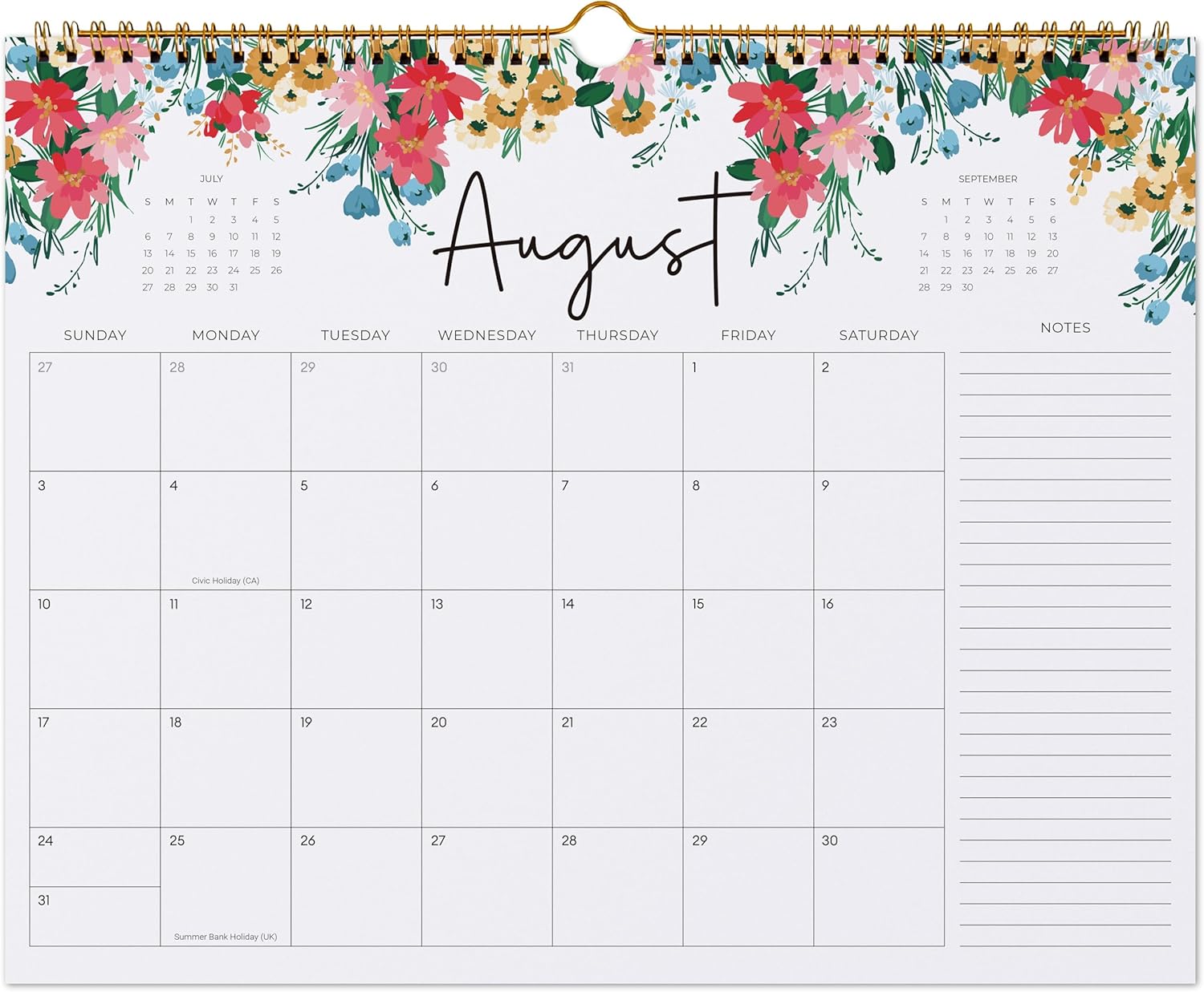 - Double-Coiled Design - The sturdy double-coiled design ensures durability, allowing the calendar to hold up well throughout the year, while also providing easy flipping between months.