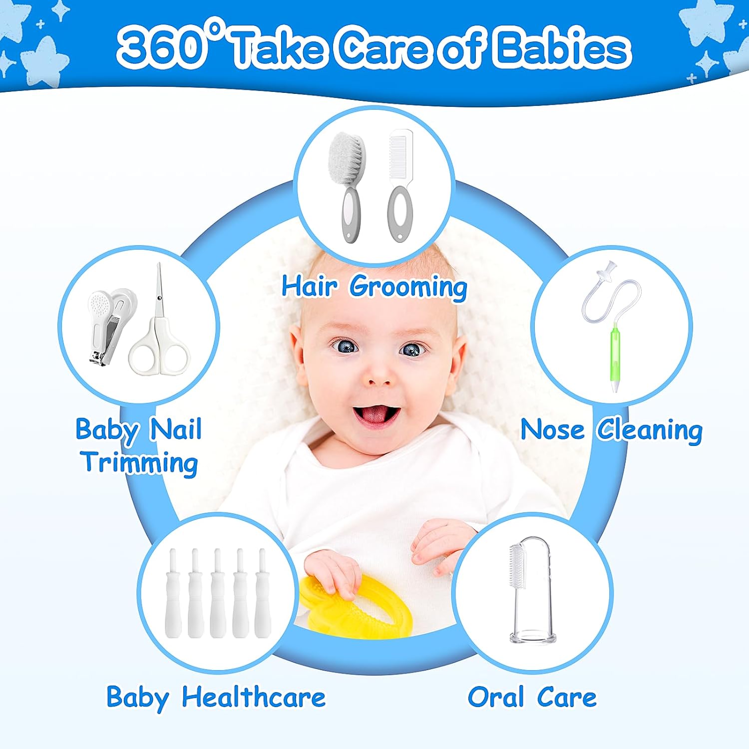 Baby Healthcare and Grooming Kit, 21 in 1 Portable Baby Essentials Kit with Gas Relief Hair Brush Comb Nasal Aspirator for Newborn Boys Girls (Grey White)