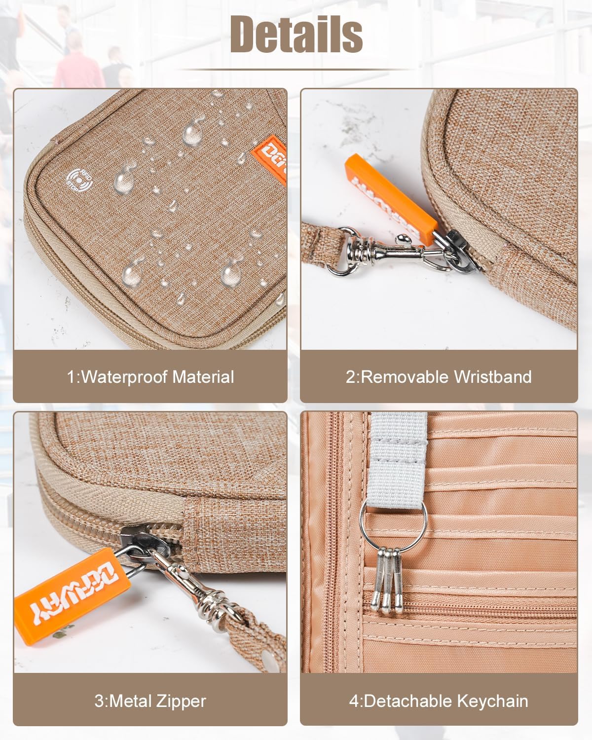 defway Passport Holder Travel Wallet - Family Passport Holder of 4, RFID Blocking Passport Wallet for Men Women, Travel Essentials for Flying (khaki)
