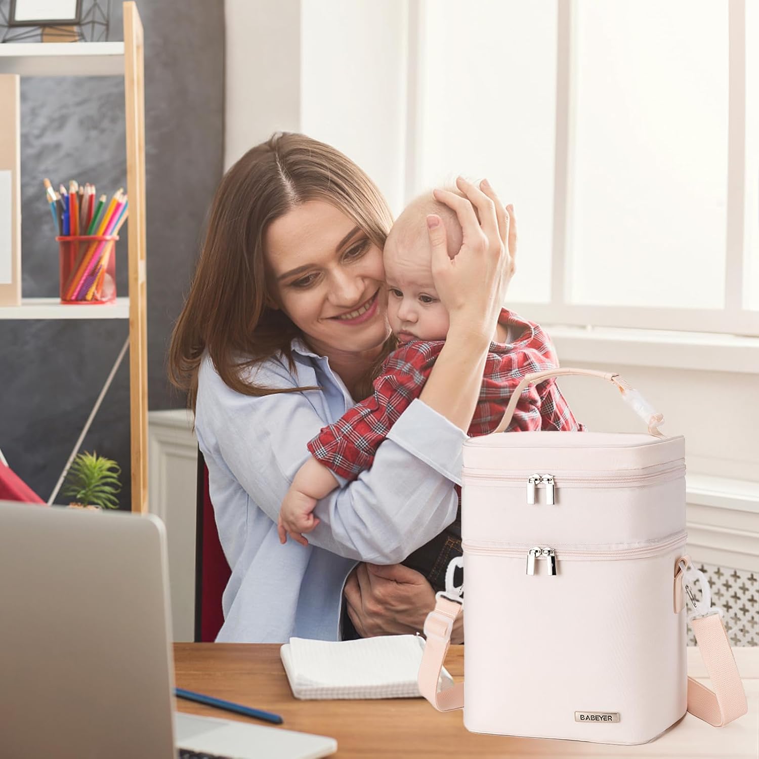 - Convenient Two-Layer Design: With its two-layer design, our breastmilk cooler bag offers maximum versatility. The upper layer is perfect for storing lunch boxes and food, while the lower layer can accommodate up to 6 bottles. Stay organized and keep everything in one place.