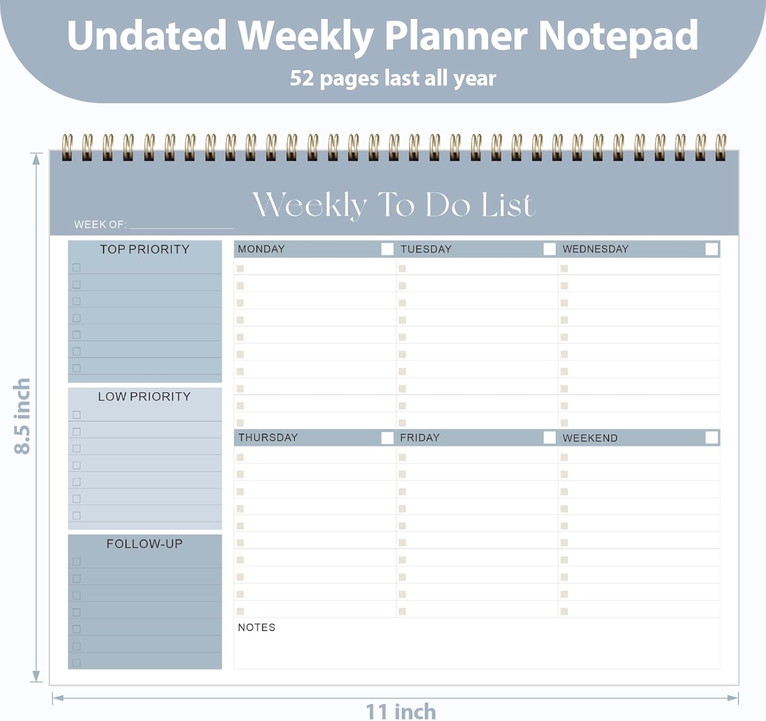 Weekly To Do List Notepad, Undated Planner with 52 Sheets (8.5''x11''), Desk Weekly Planner for Women & Man, Home School & Work (B-Blue)