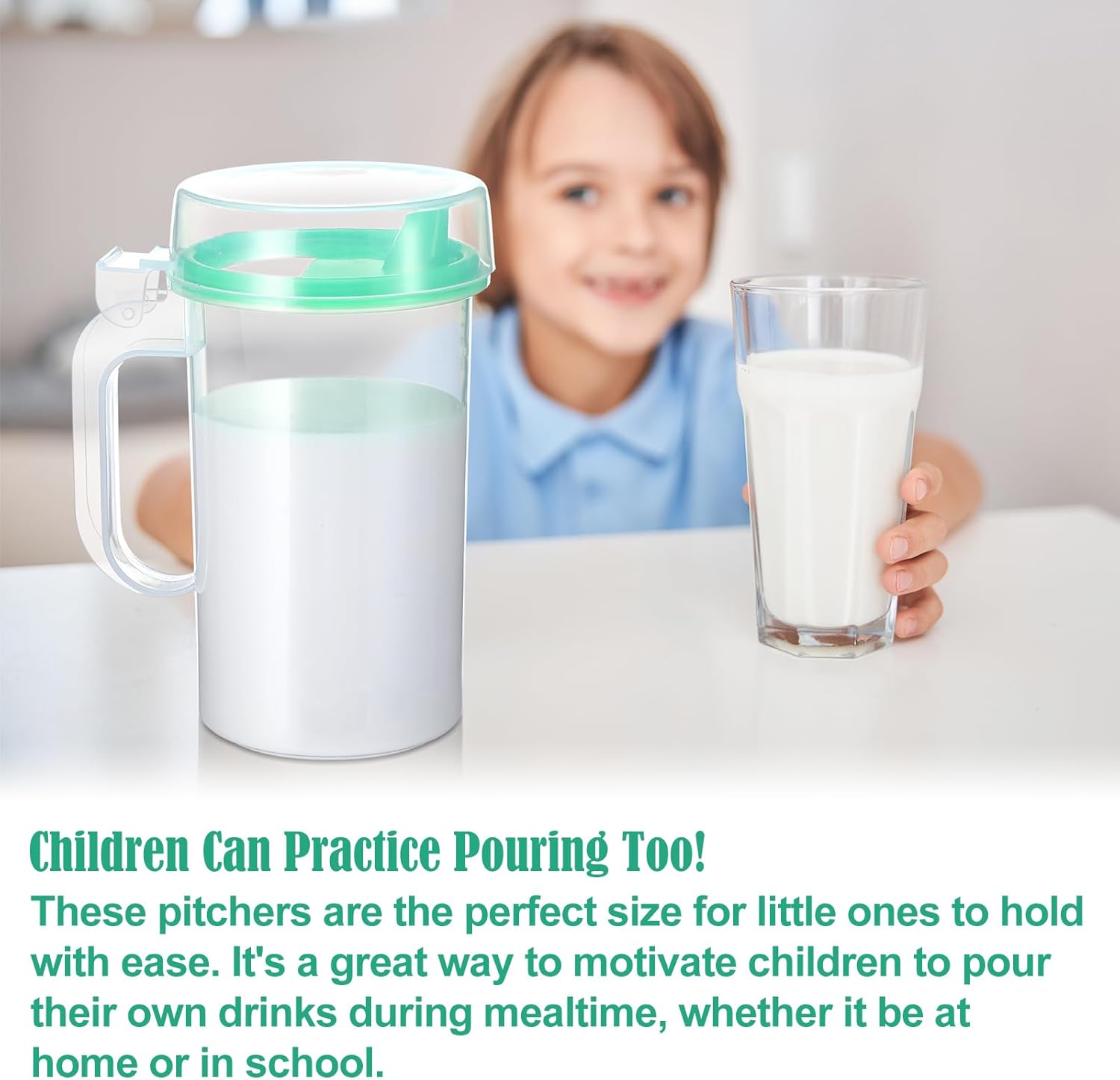 - Beautifully Designed: this easy pours pitcher makes pouring water during family meals or snack time a breeze; Each pitcher holds up to 16 ounces of liquid and measures 6.5 inches tall; 6 inches wide; Suitably sized for small hands