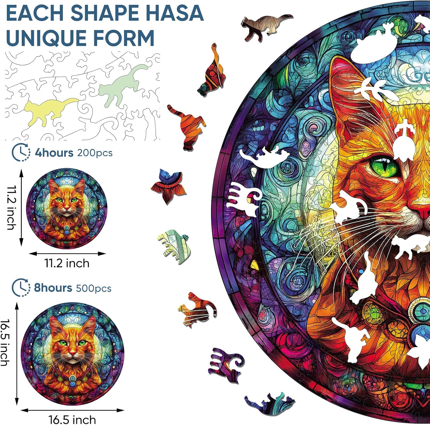 Cool Wooden Puzzle for Adults 500 Piece, Yellow Cat Wooden Jigsaw Puzzles, Beautiful Wooden Puzzle with Box Birthday Gifts for Adults and Kids Family Game(16.5 * 16.5in)
