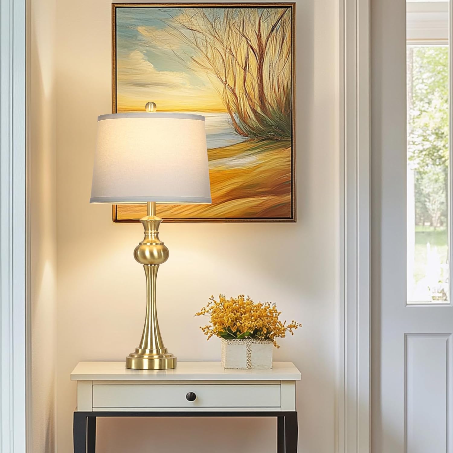 - Exquisite Metal Table Lamps:This bedside table lamp design with heavy duty metal lamp body and finished in a natural linen white lampshade which is perfect combination of modern and metal style that adds energy and elegance to your space. Our brass table lamps not only illuminate your home, but are a unique home decor.