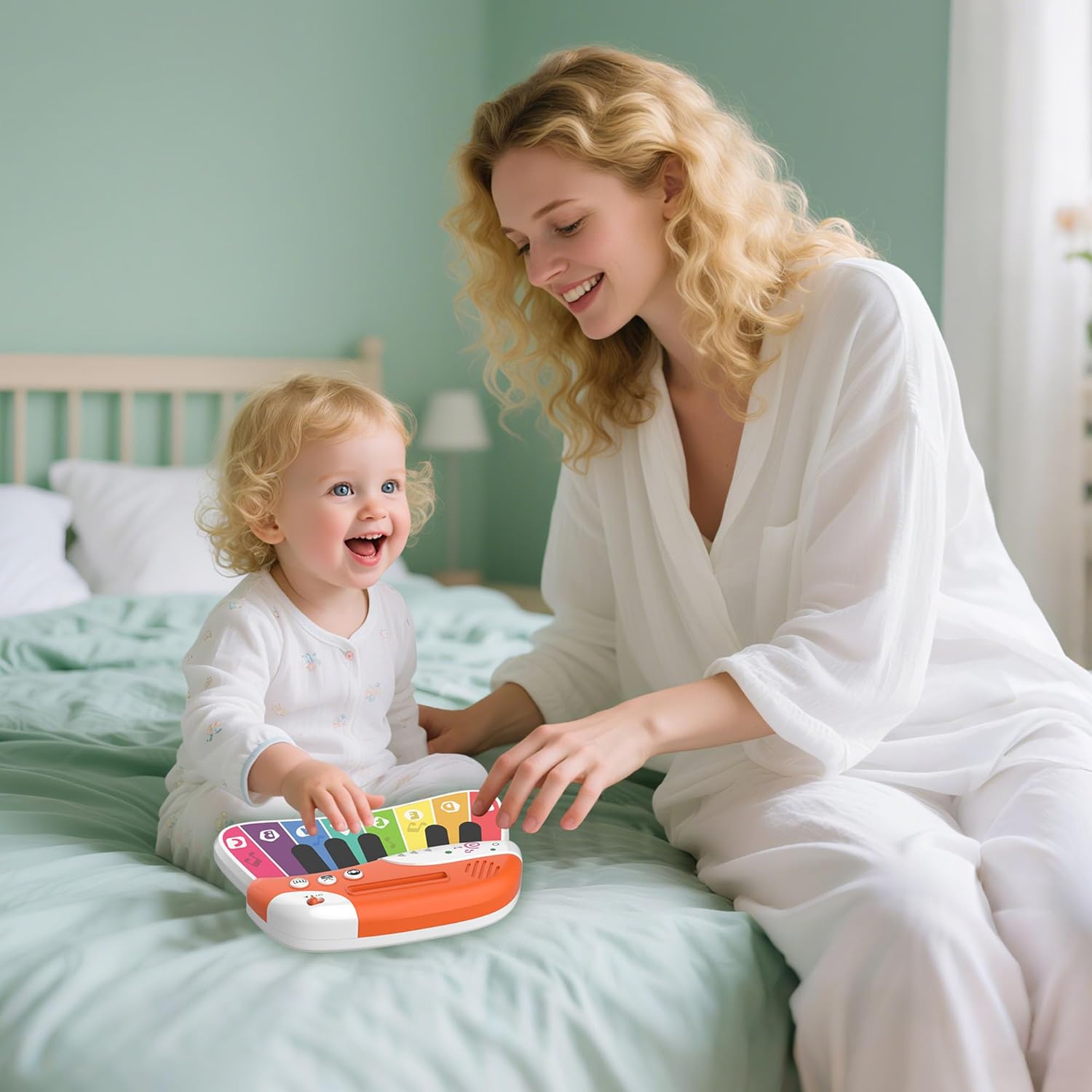 - Colorful Learning, Joyful Playing – Featuring 12 vibrant colors, this baby piano toy keyboard helps babies naturally learn colors, letters, and sounds all at once. Through “look, touch, play,” little ones build sensory awareness, color perception, and all in one joyful musical toy.