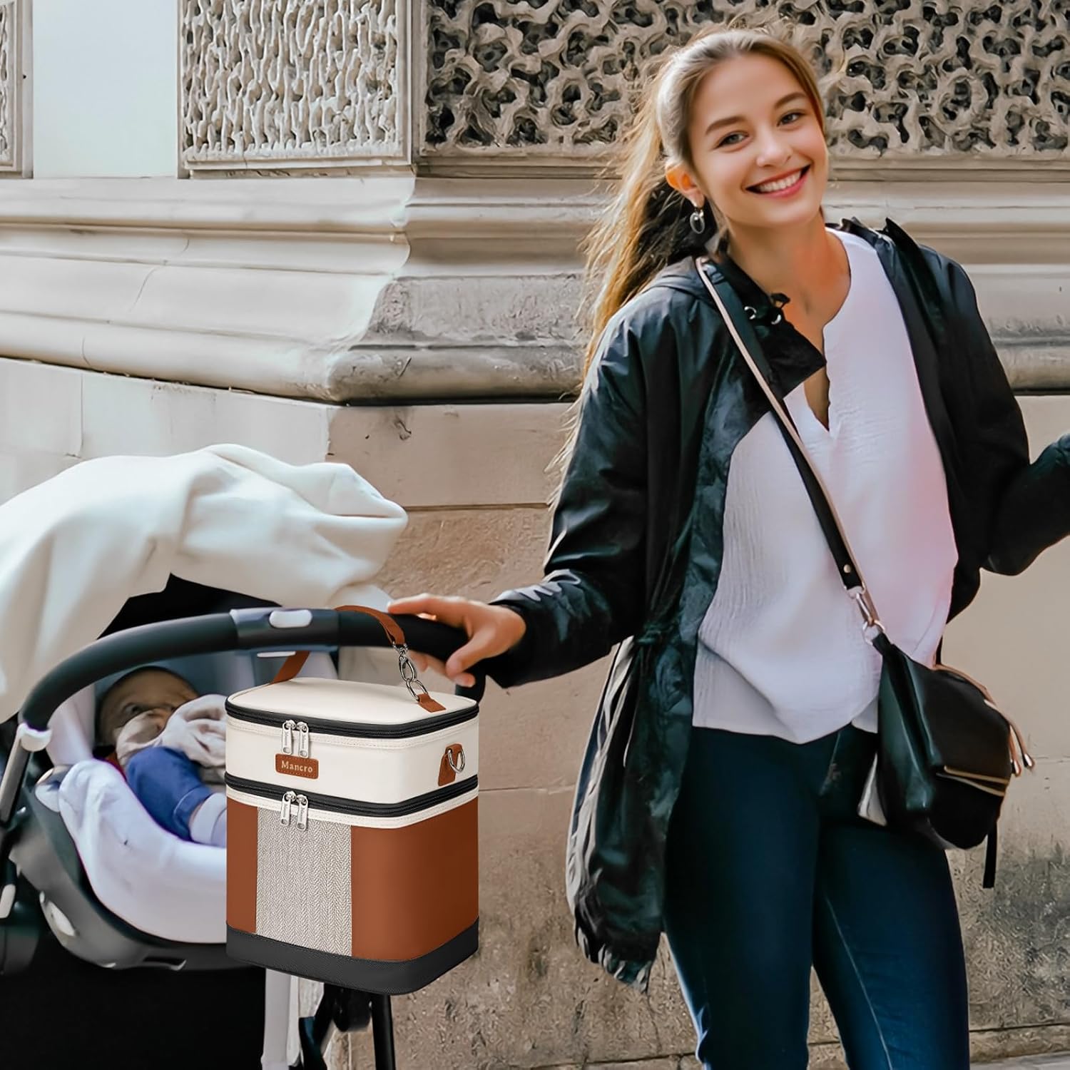 - Easy to Carry:The bottle bag for daycare comes with a shoulder strap and buckle handle that attaches to a stroller for hands-free use. This mancro breastmilk cooler bag with ice pack is great for work, daycare, shopping, or travel. Functional and stylish, it's a perfect gift for breastfeeding or pumping moms on the go.