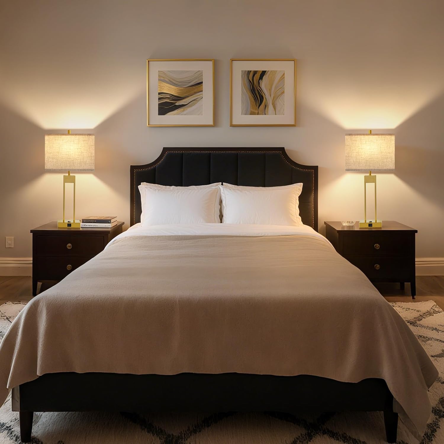 - Minimalist Style Design: Designed with gold finish poles and complemented with rectangle fabric lampshades. These lamps for nightstands add style and elegance to your room even when there is no lighting during the day. The material of the lamp body is metal, it is not only fashionable and beautiful, but also durable and avoids tipping, sliding, or moving around